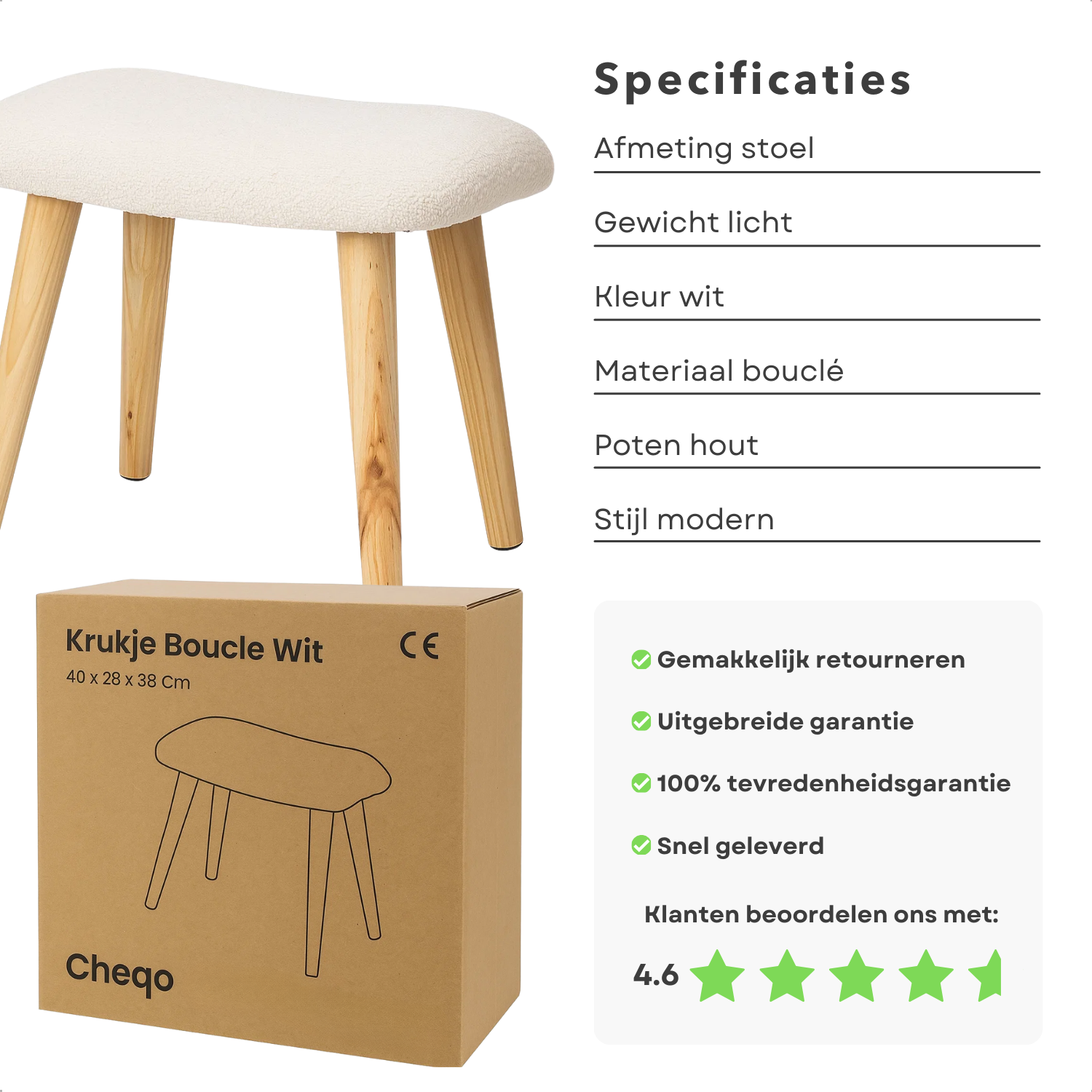 Cheqo® Krukje Wit - Houten Poten - Kruk - Stoeltje - Bijzettafel - Tafeltje - Teddy - Poef