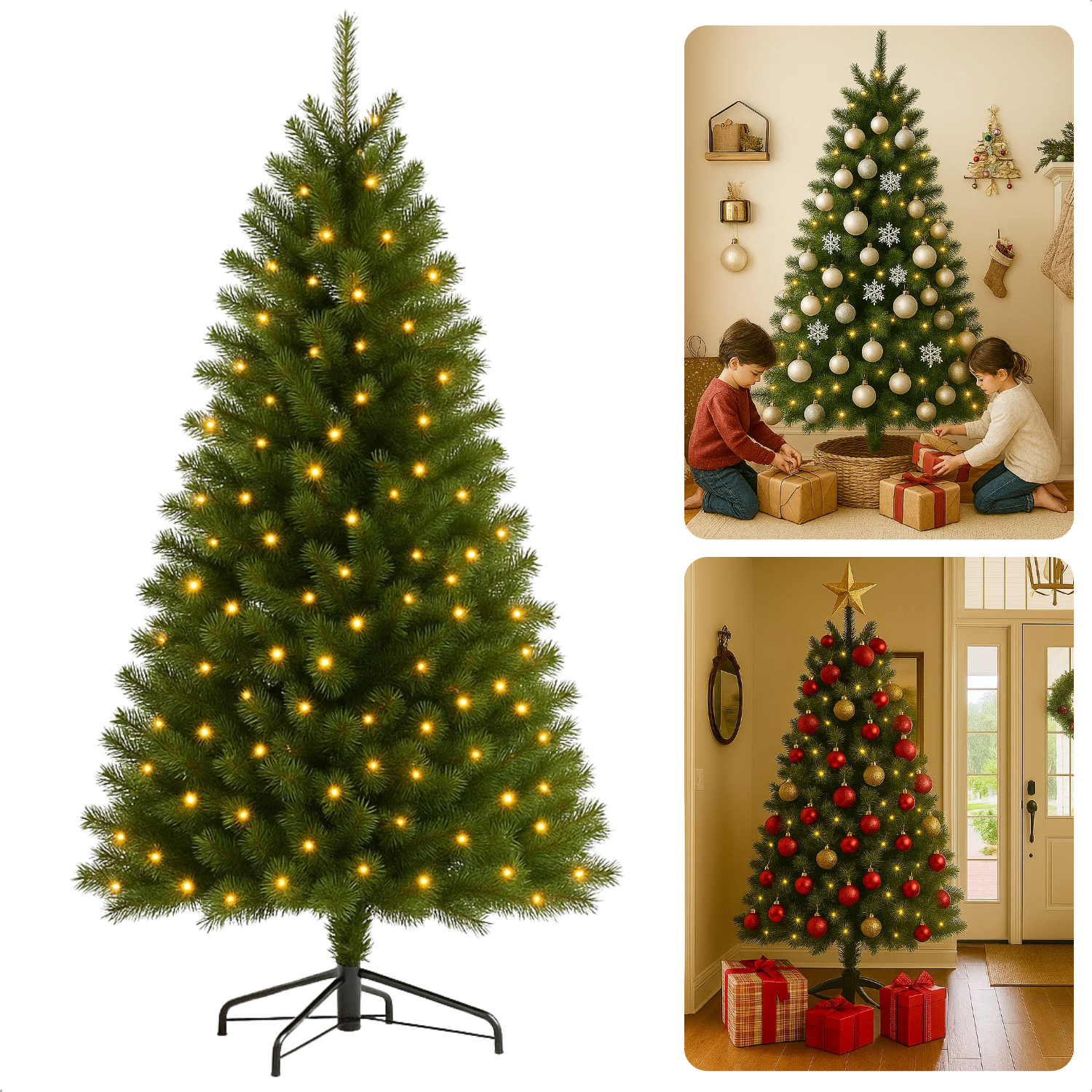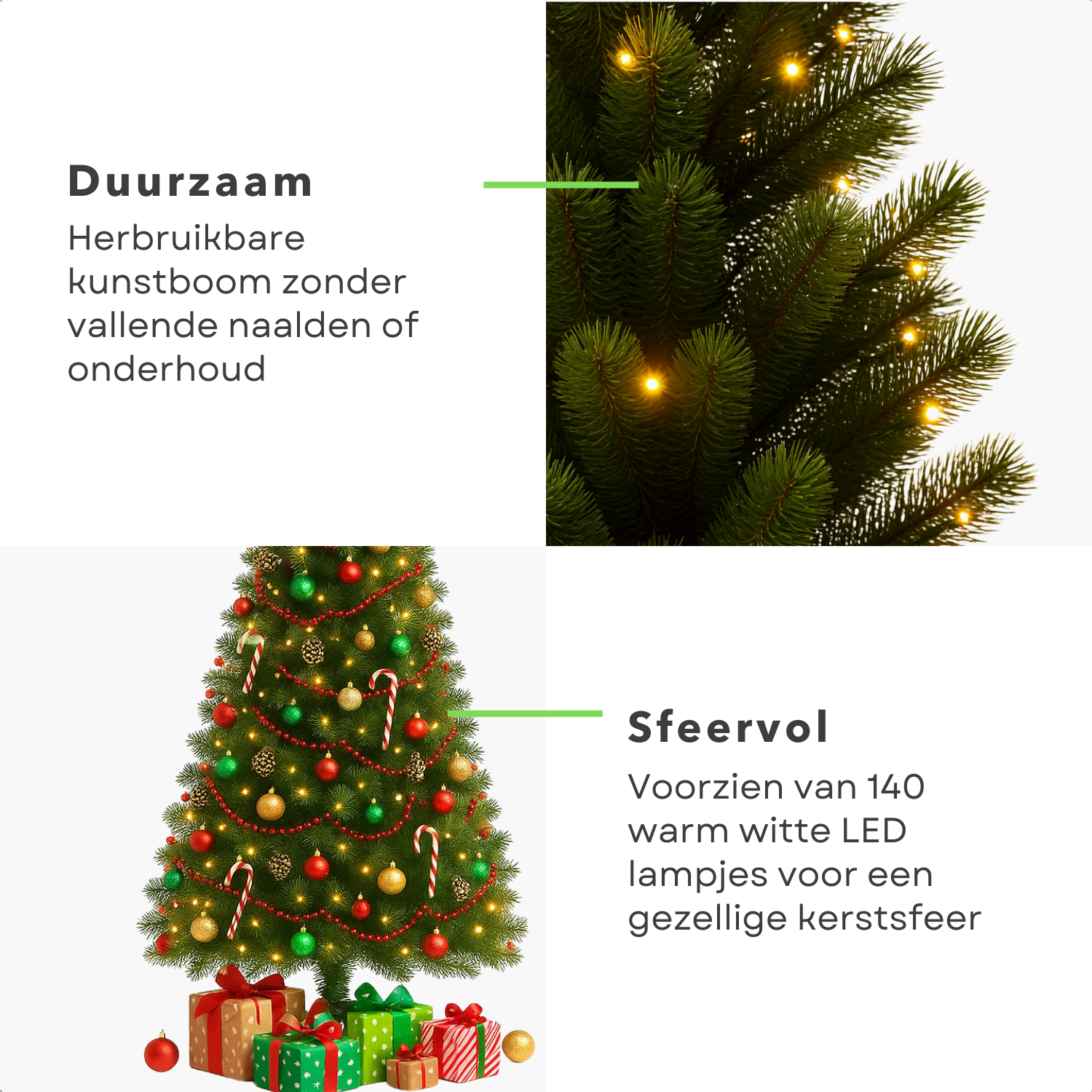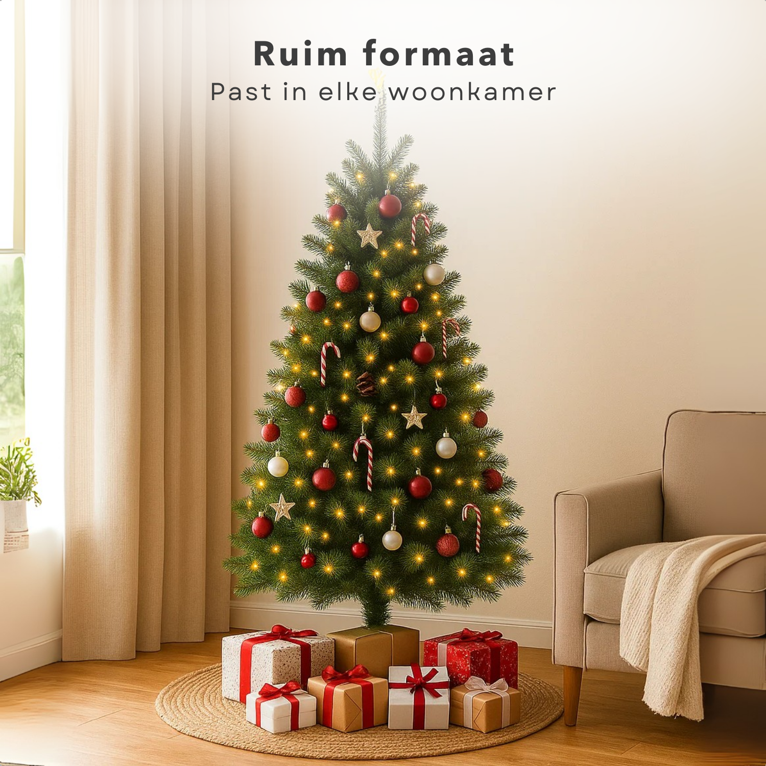 Cheqo® Kunstkerstboom Met Verlichting - Kunstkerstboom 185 cm - Verstelbare Takken - Onderhoudsvriendelijke Kerstboom - Kunststof Kerstboom - Kerstboom Voor Binnen - Warm Witte LED Lampjes - Kerstboom Met Standaard - Ruimtebesparende Kerstboom