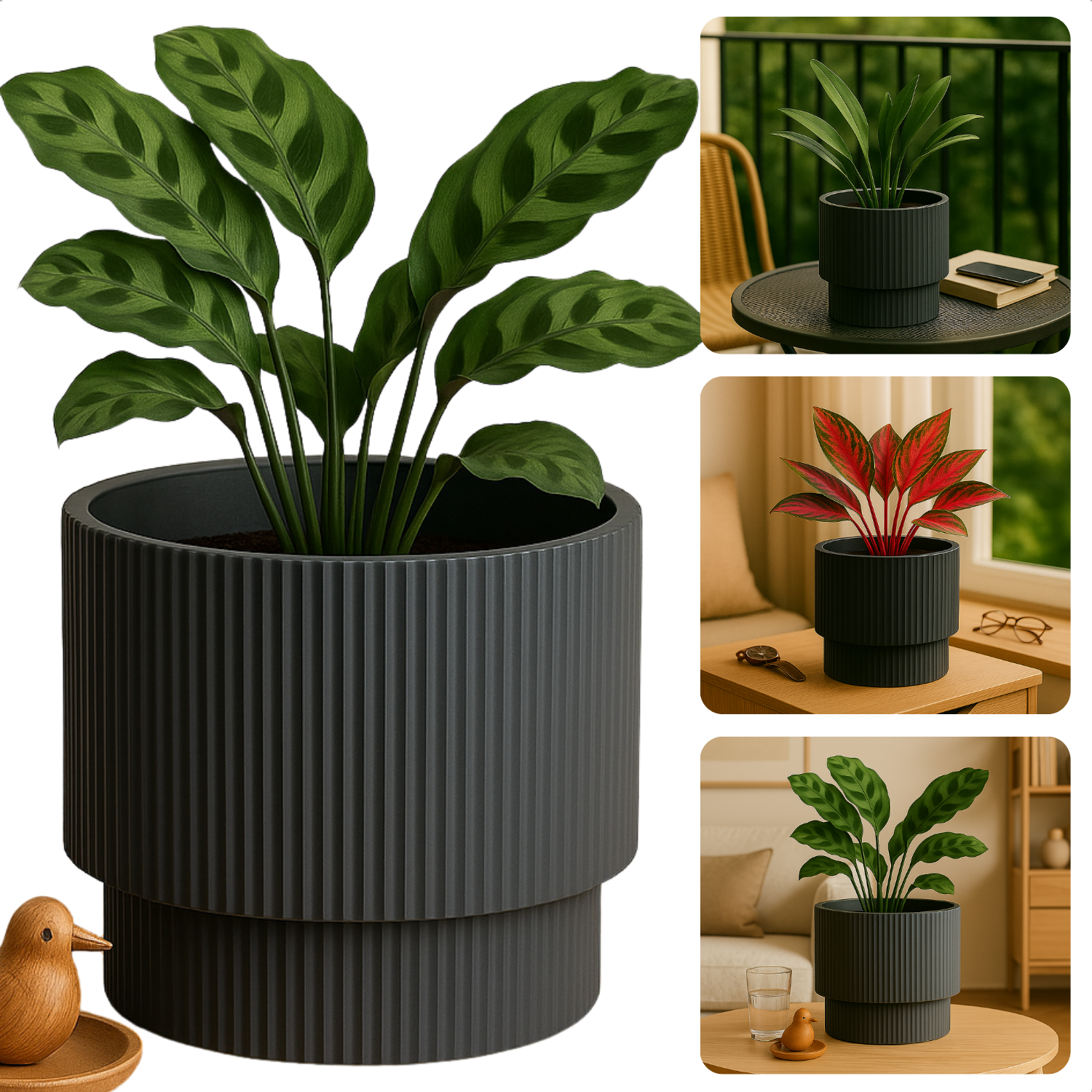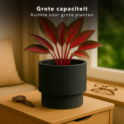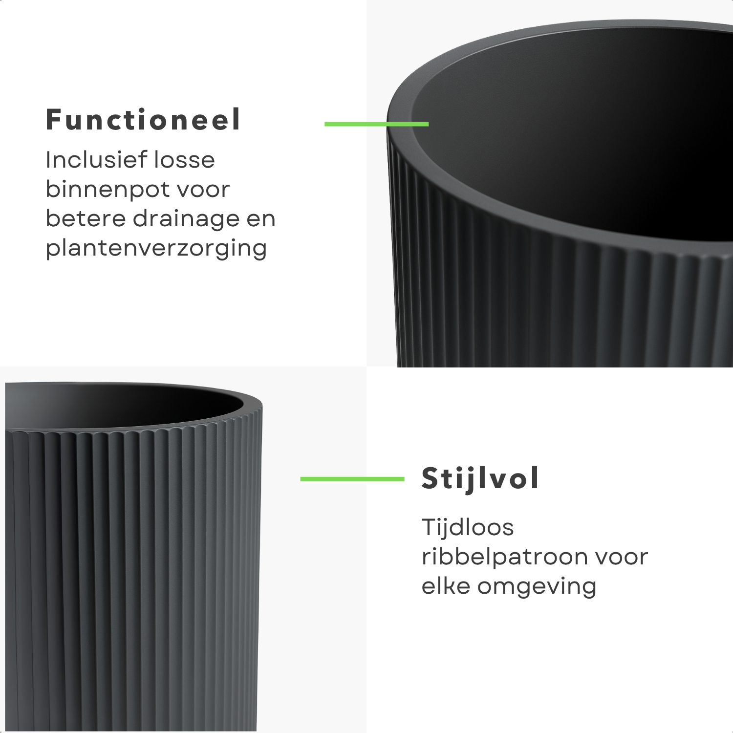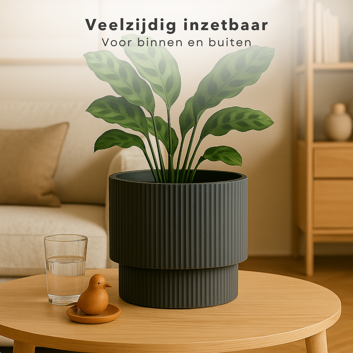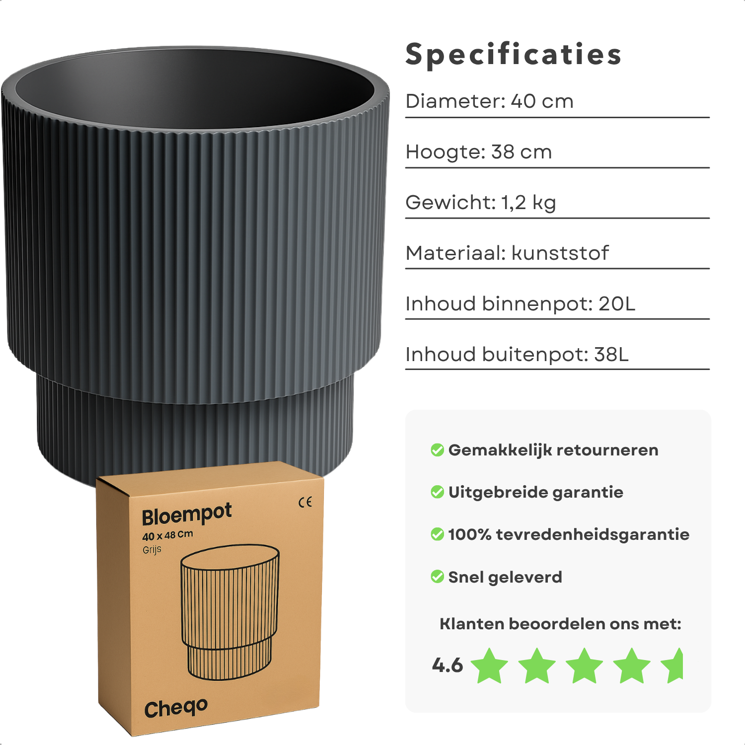 Cheqo® Bloempot Grijs - Grijze Plantenpot - Plantenbak - Kunststof - Voor Binnen en Buiten - Ideaal voor Balkon