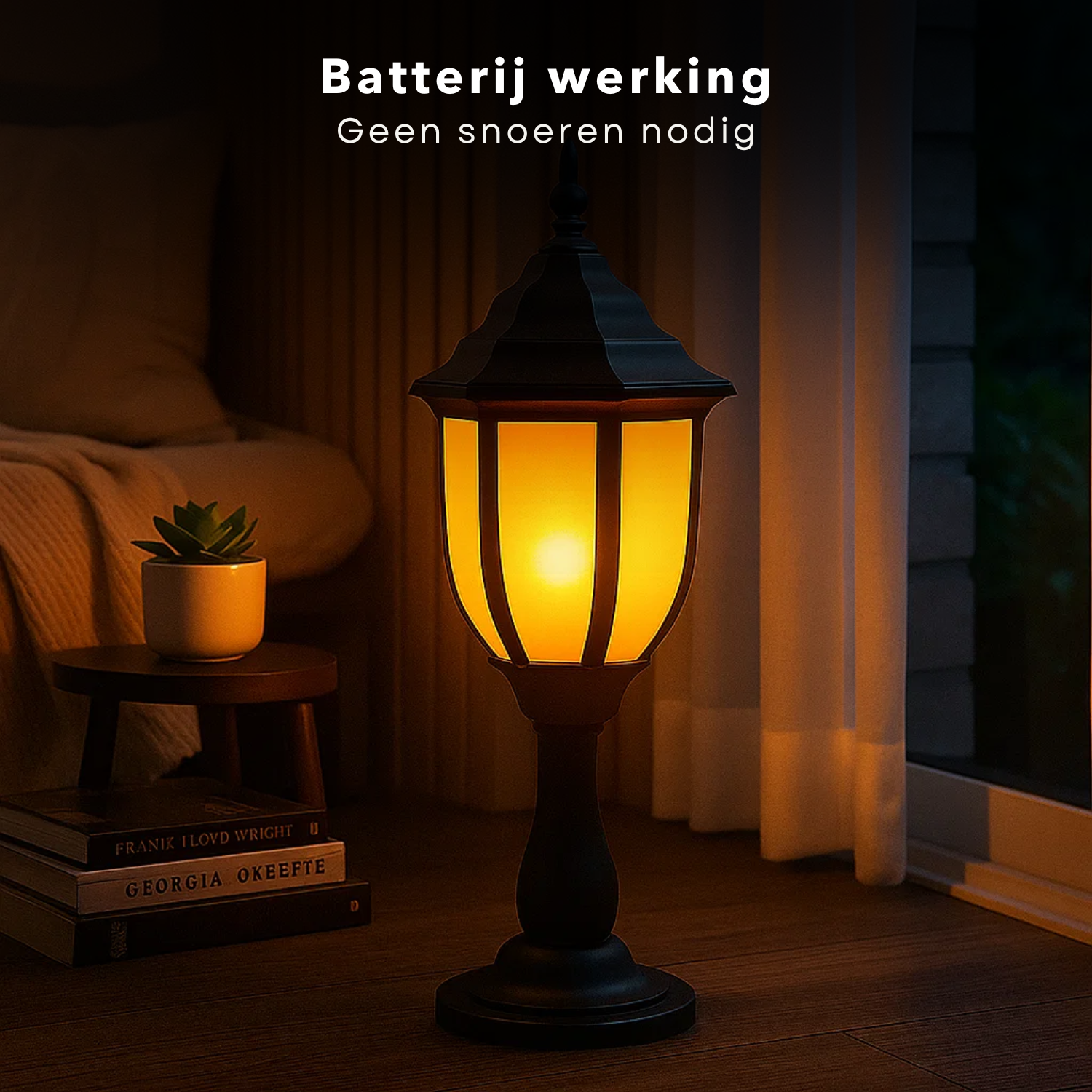 Cheqo® Lantaarn Met Vlameffect - Sfeervolle Kerst Lantaarn - Realistisch Vlameffect - Kunststof Lantaarn - Timer Functie - 48 cm Hoog - Voor Binnenshuis - LED Verlichting - Op Batterijen - Op Batterijen - 6 Uur Aan