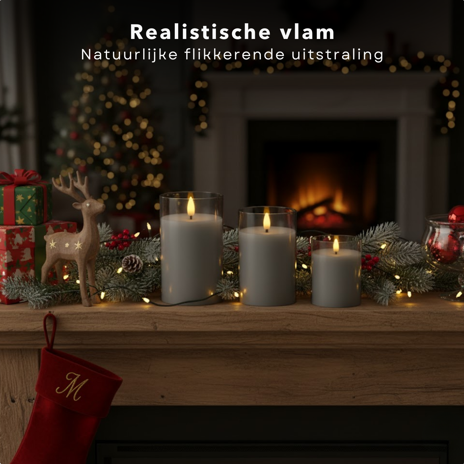 Cheqo® LED Kaarsen Set – Inclusief Afstandsbediening – Grijs Glasdesign – Werkt op Batterijen – Timerfunctie – Dimbare Verlichting – Twee Lichtstanden – Decoratieve Kaarsen – Elektrische Kaarsen - LED Kaars