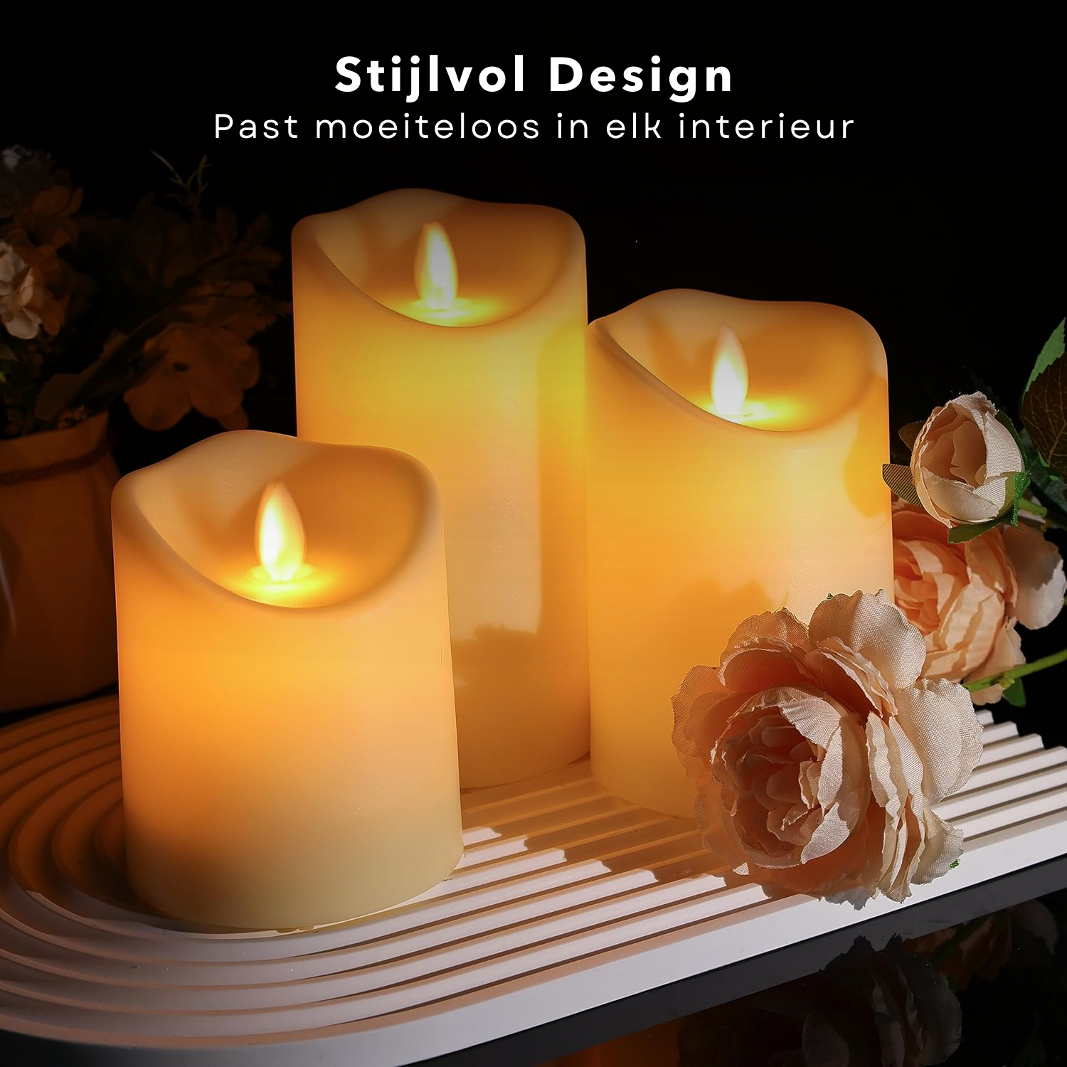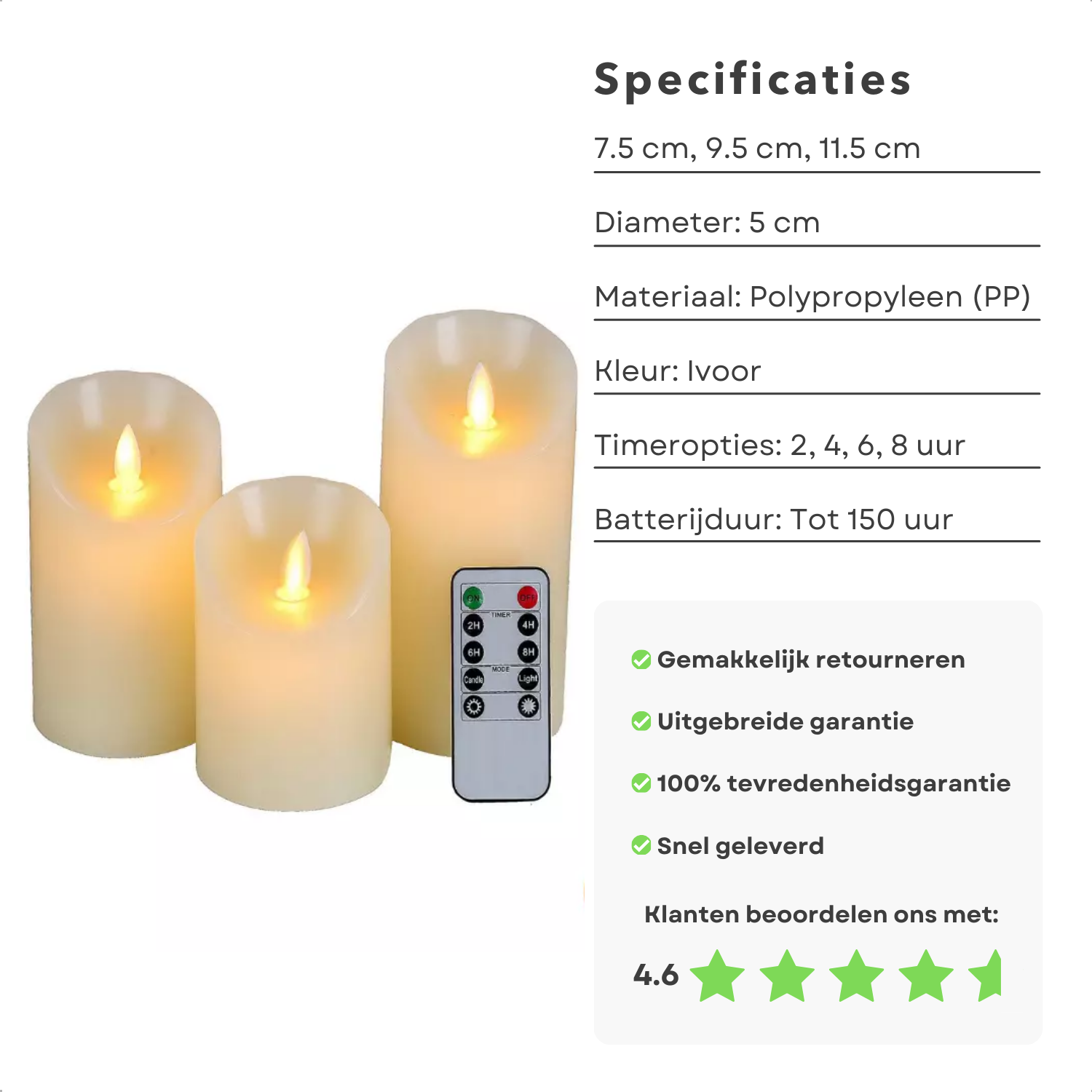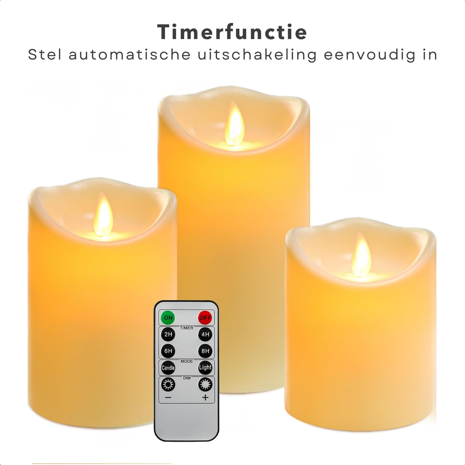 Cheqo® LED Kaarsen Set - Bewegende Vlam - Dimbaar en Ivoor - Inclusief Afstandsbediening