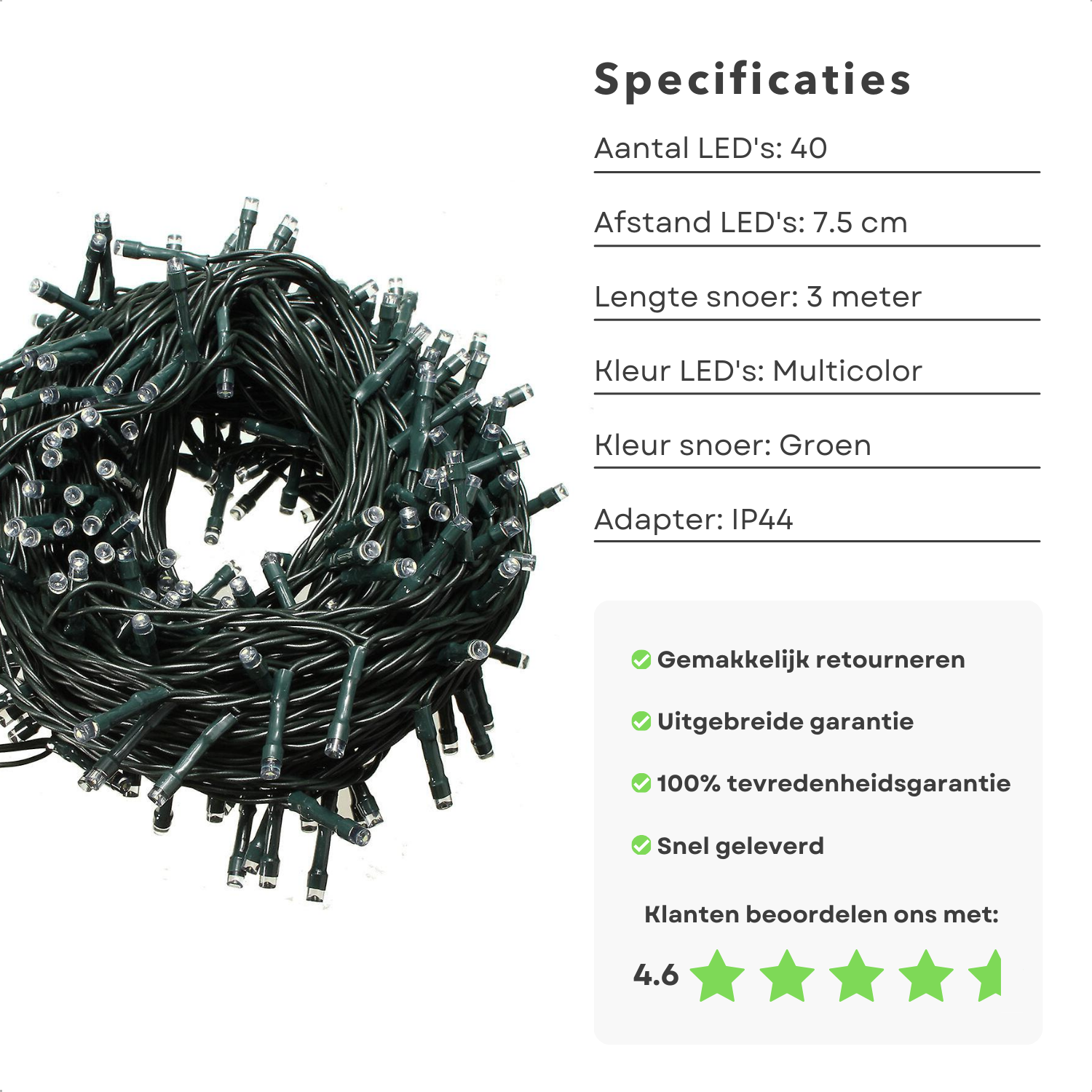 Cheqo® Kerstverlichting - Kerstboomverlichting - Kerstlampjes - LED Lichtsnoer - 3 Meter - Multicolor - Voor Binnen en Buiten - Waterdicht
