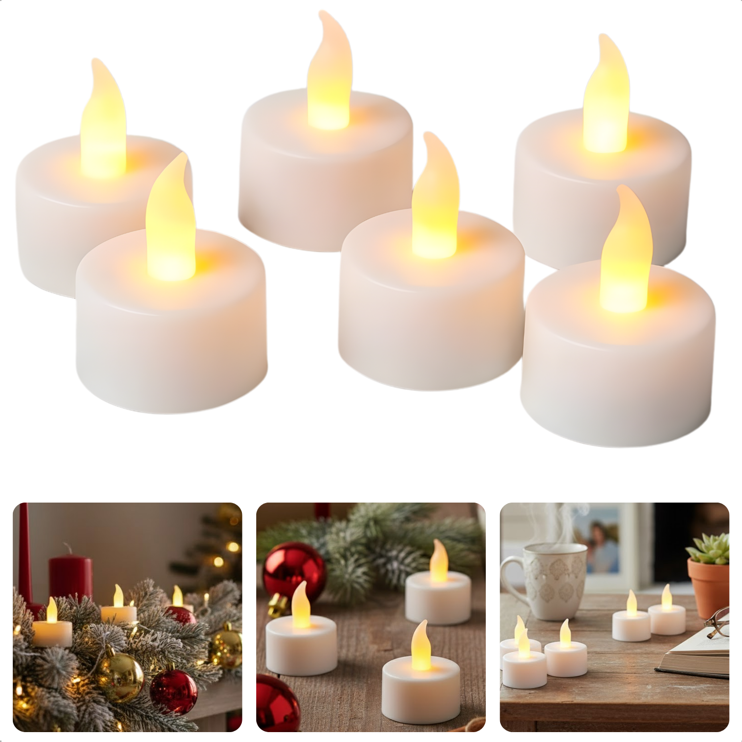 Cheqo® LED Theelichten Elektrisch - Flikkerend Warmwit Licht - Witte LED Kaarsen - Theelicht Set - Elektrische Waxinelichtjes - Decoratief Licht - Vervangbare Batterijen - Set Van 6 Waxine Lichtjes - Kaarsjes Elektrisch