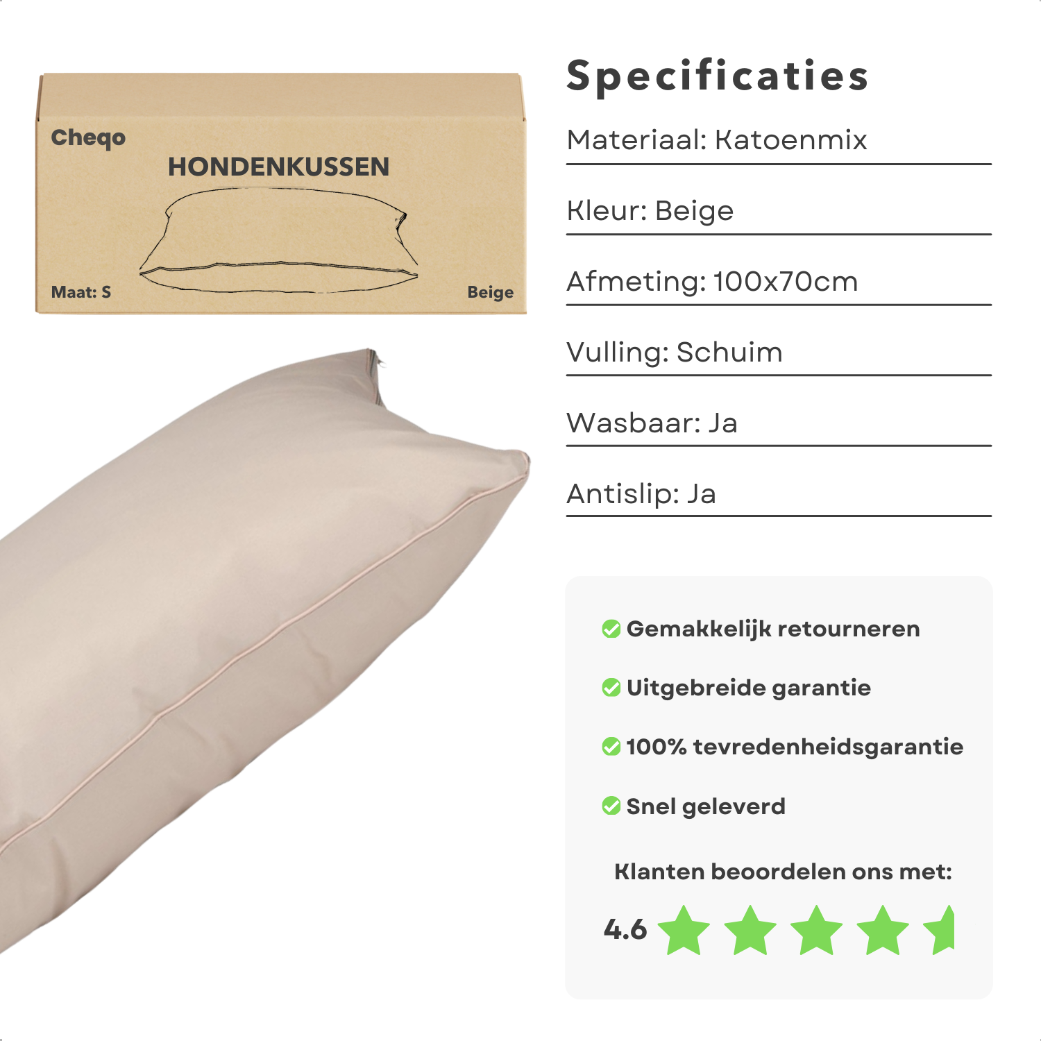 Cheqo® Hondenkussen - Huisdierbed - Hondenmand - Benchkussen - Hondenbed - Waterdicht - Voor Grote Honden - Beige