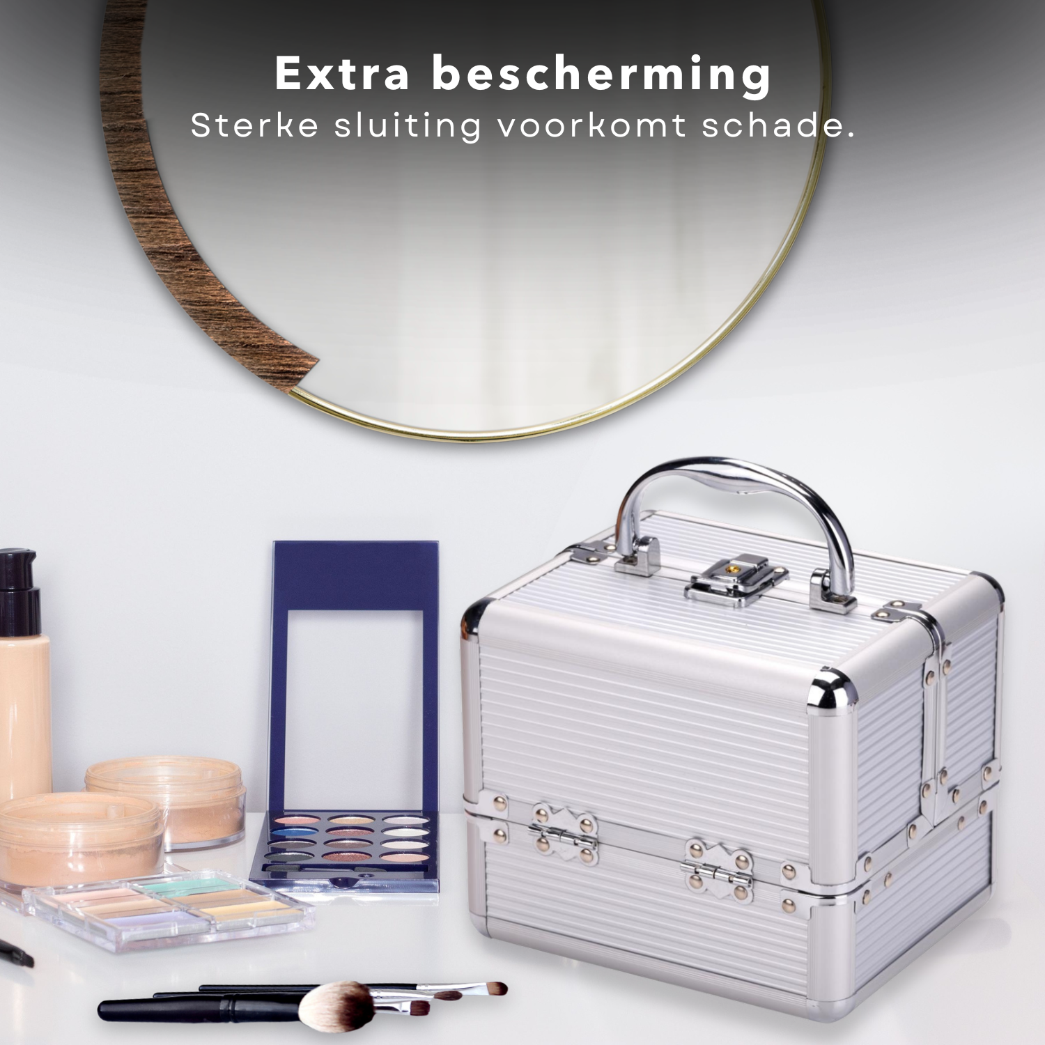 Cheqo® Make-up Koffer Aluminium - Grote Cosmetica Organizer - Beauty Case met Vakken - Visagiekoffer - Cosmeticakoffer - Beautycase