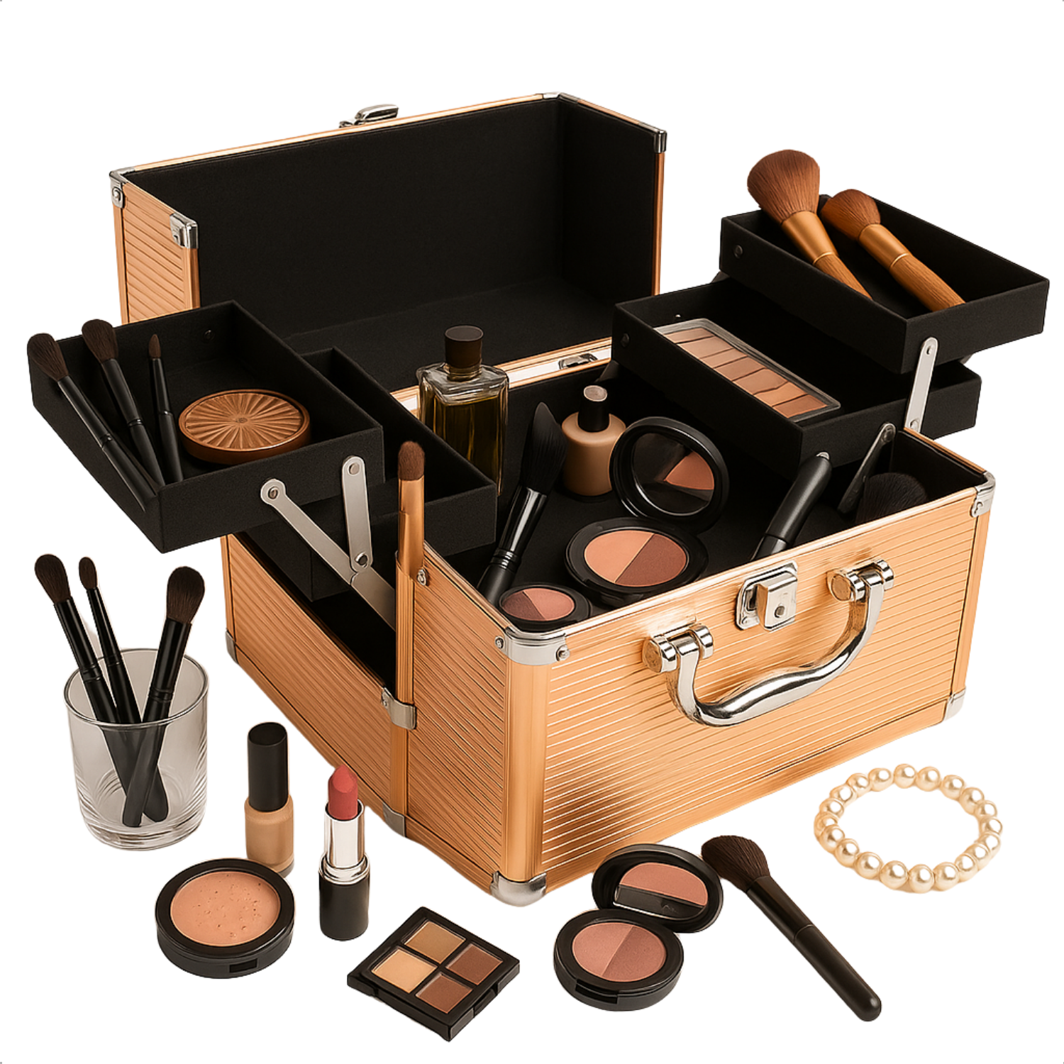 Ontdek de ultieme oplossing voor al uw make-up behoeften met de Cheqo® Make-up Koffer. Deze stijlvolle en duurzame aluminium koffer is perfect voor zowel professionele make-up artiesten als liefhebbers. Met zijn ruime indeling en handige vakken houdt u al uw cosmetica georganiseerd en binnen handbereik.