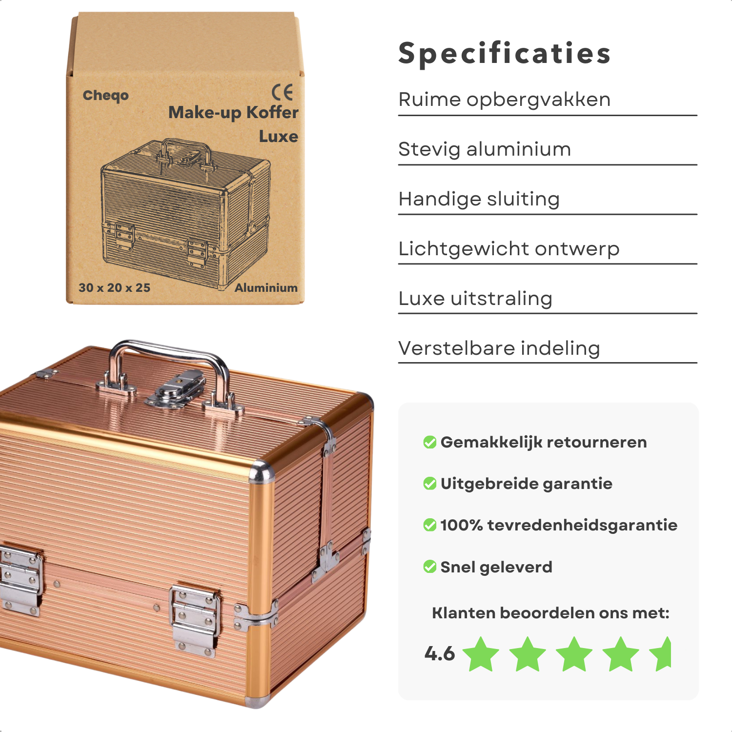 Mis deze kans niet om uw make-up collectie te organiseren met de Cheqo® Make-up Koffer. Bestel nu en geniet van gratis verzending!