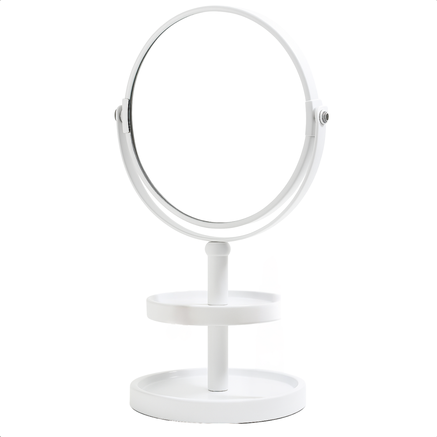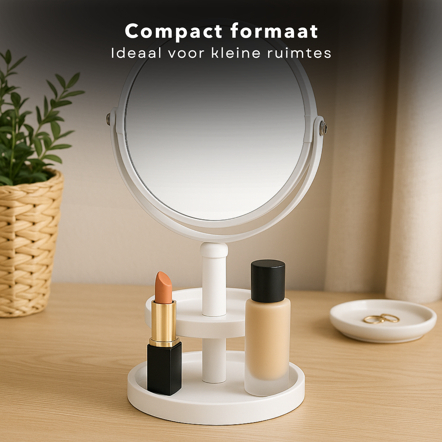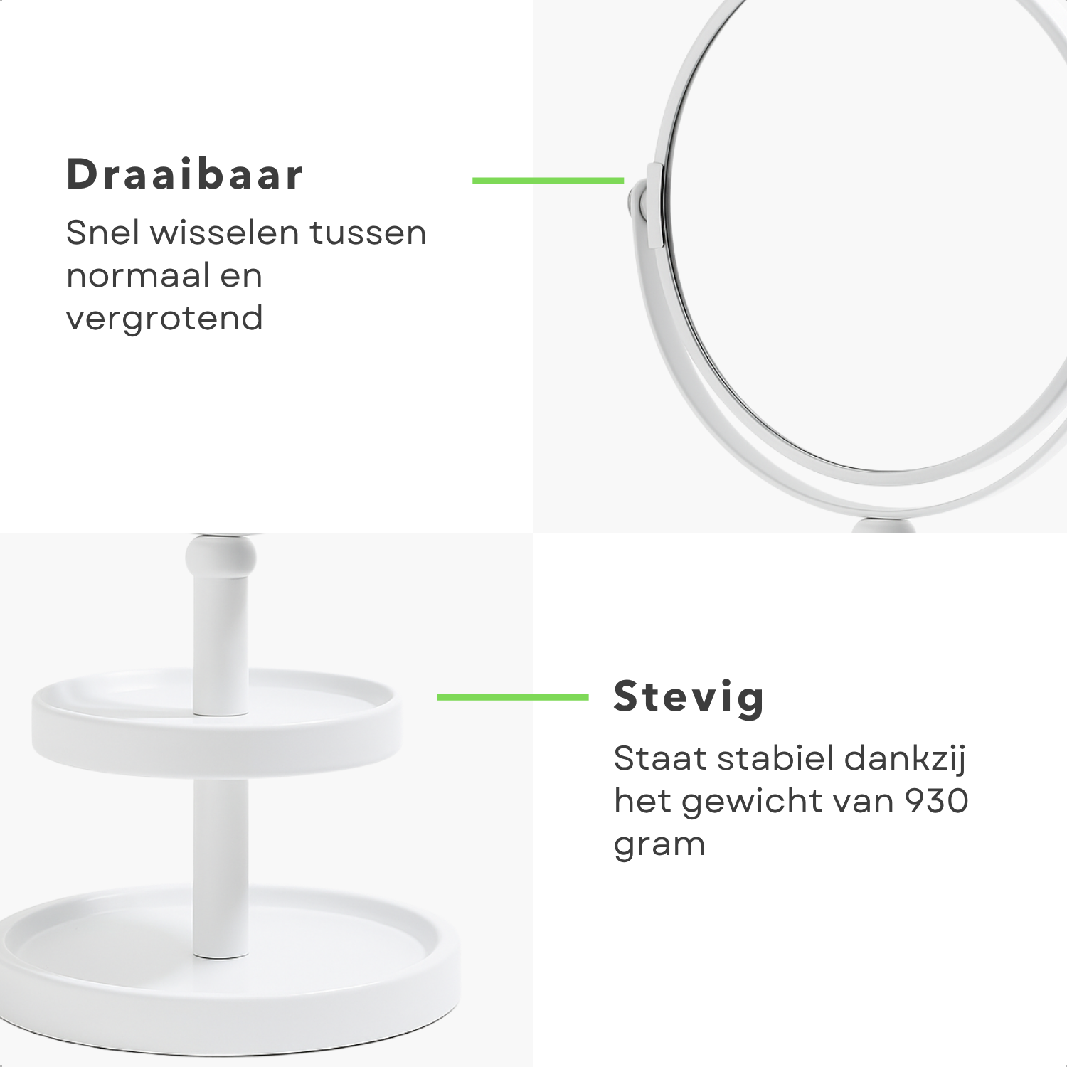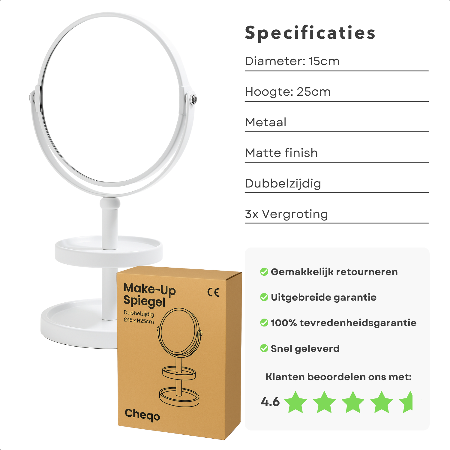Cheqo® Make-Up Spiegel met Oganizer - Scheer Spiegel - Vergroot Spiegel - Makeup Spiegel met Houder - Wit - Dubbelzijdig - Metaal