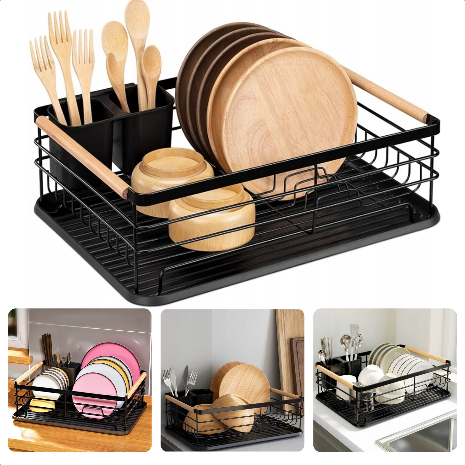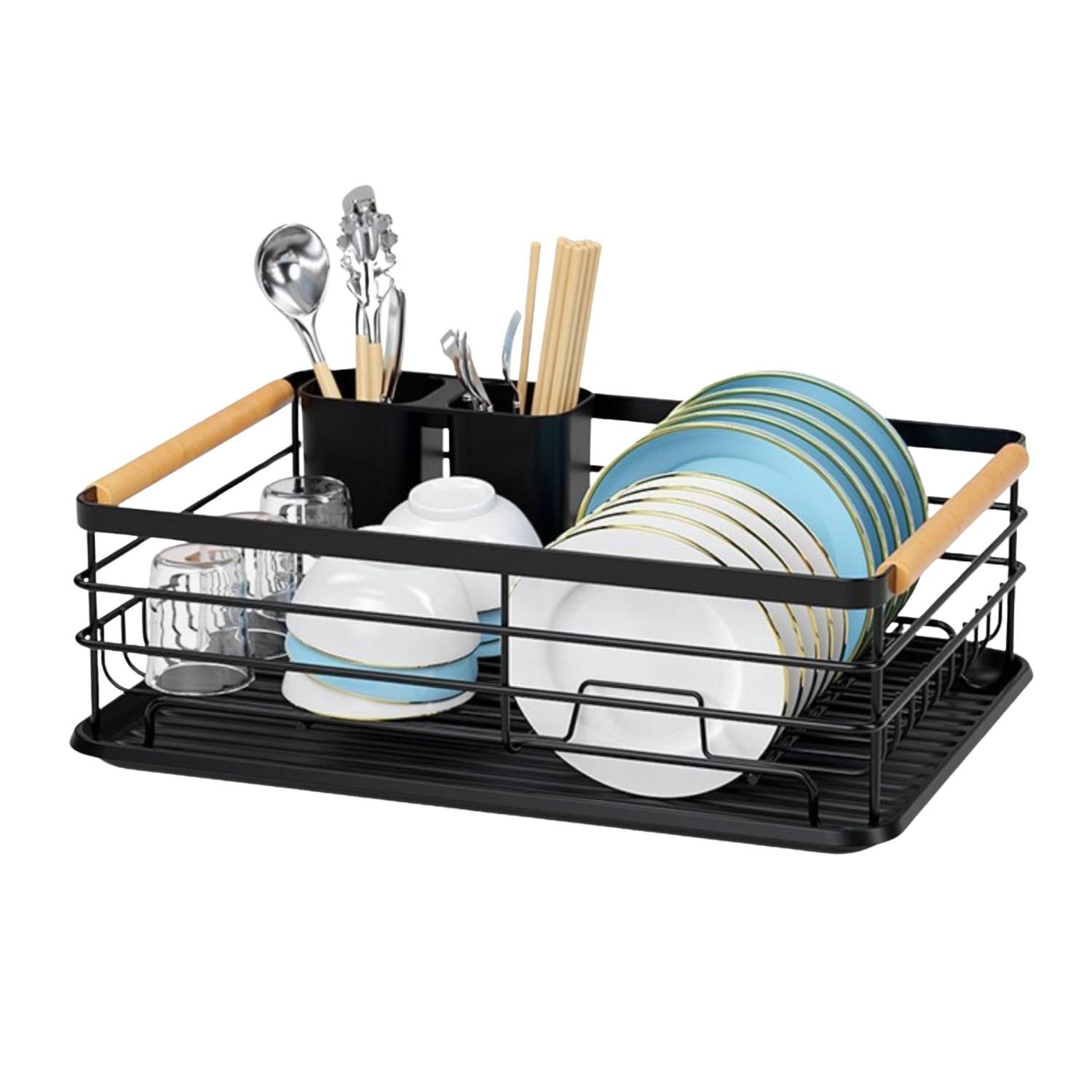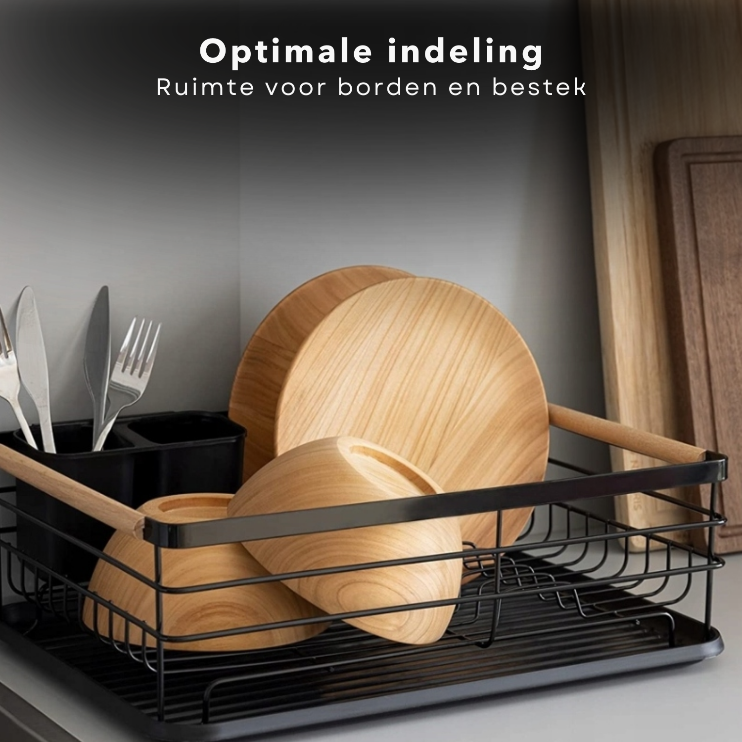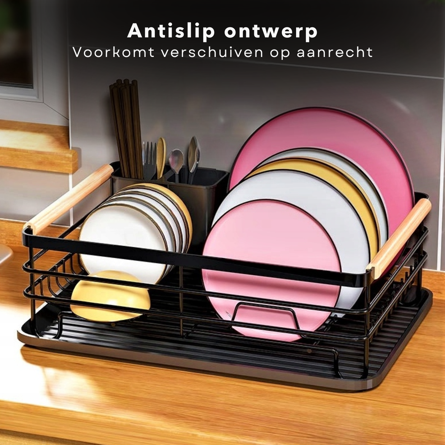 Cheqo® Metalen Afwasrek - Afdruiprek - Vaatdroger - Zwart - Vaatwasrek - Keukenrek - Met Lekbak en Bestekhouder