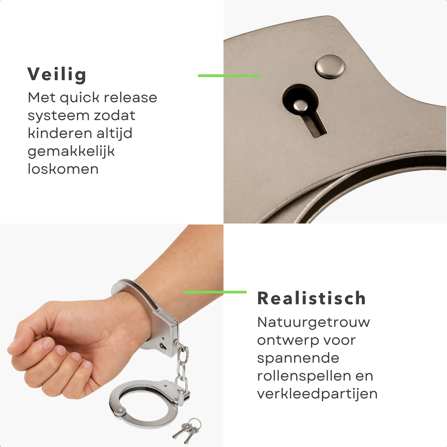 • Hoe worden de handboeien geopend?: Met de meegeleverde sleutels. Bewaar de sleutels altijd op een veilige en toegankelijke plek.