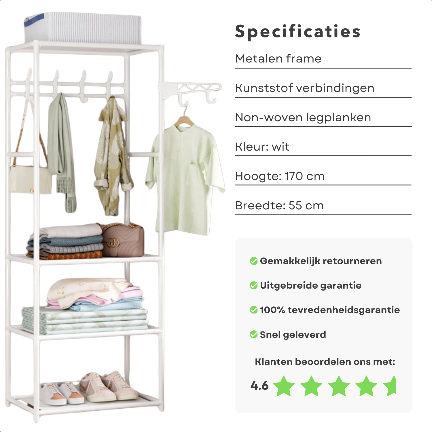 • Metalen Frame: Duurzaam en stevig, biedt uitstekende ondersteuning voor al uw kledingstukken.