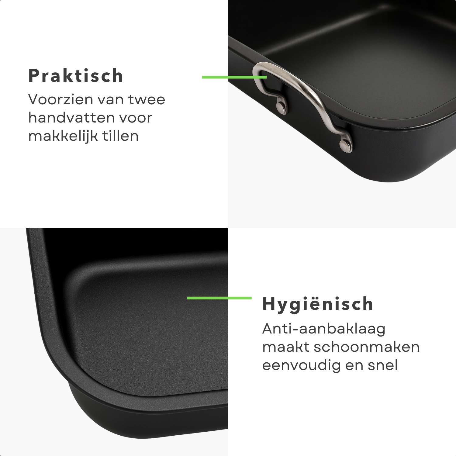 Cheqo® Metalen Ovenschaal - Anti-Aanbaklaag - Rechthoekige Schaal - Braadschaal Met Handvatten - Lasagnepan - Groenteschotel Ovenschaal - Kip Bakken Ovenschaal - Niet Vaatwasmachinebestendig - Handwas Aanbevolen