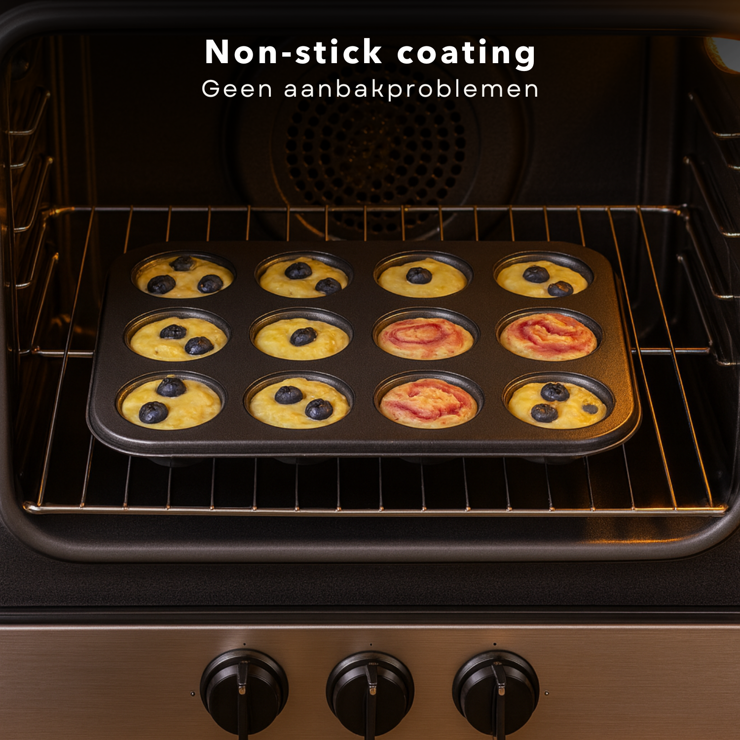 Cheqo® Muffinvorm met Non-Stick Coating - Bakvorm Cupcakes - Cupcakevorm - Ovenbestendig Tot 220 Graden - Voor 12 Muffins - Cupcake Bakvorm - Cupcakes Bakken