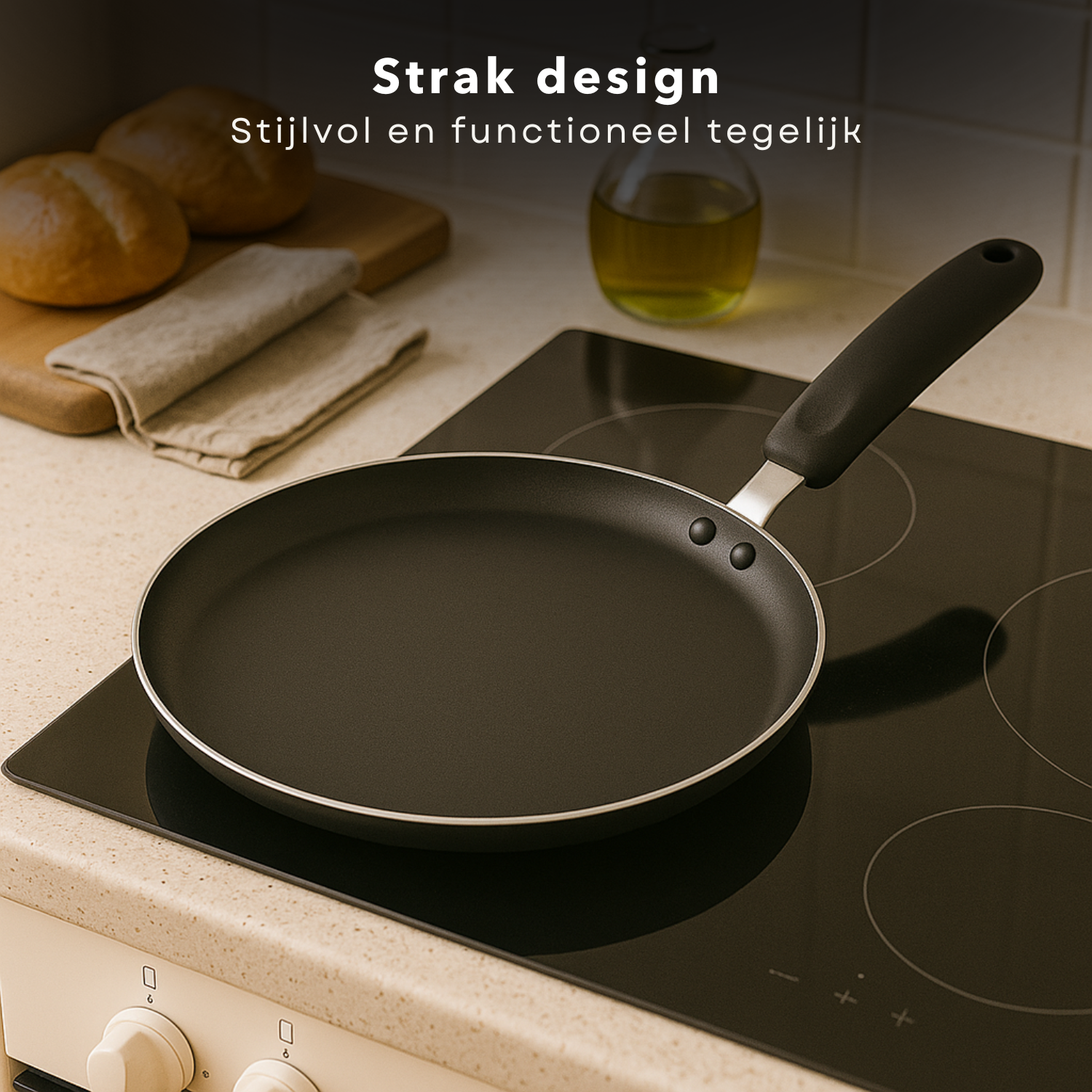 Cheqo® Pannenkoekenpan 24 cm - Pannenkoekpan PFAS Vrij - Crepe Pan - Koekenpan voor Pannenkoeken - Keramische Anti-aanbaklaag - Ook voor Inductie - Zwart