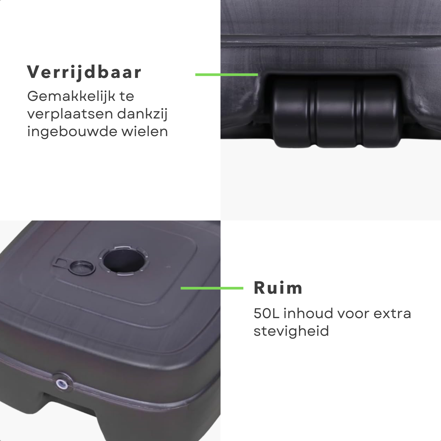 Cheqo® Parasolvoet Antraciet - Parasolhouder - Vulbaar - Verrijdbaar - 50L - Kunststof - Zware Basis