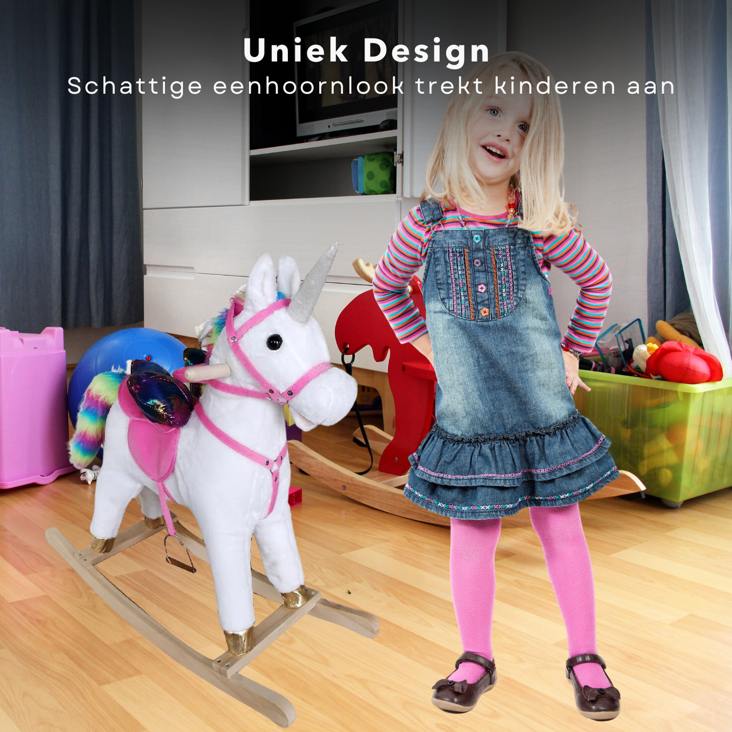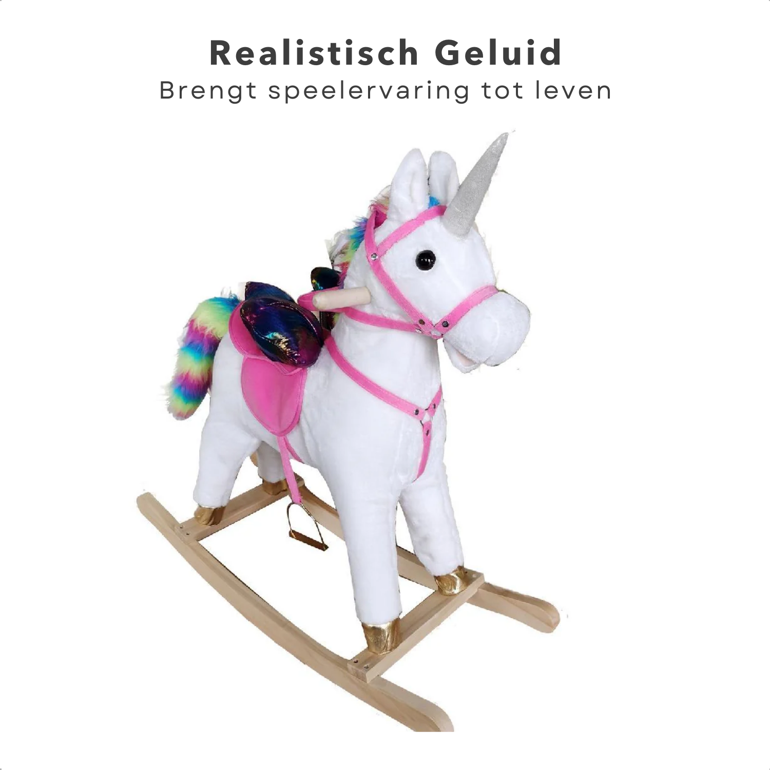 Cheqo® Pluche Eenhoorn Hobbelpaard - Schommelpaard - Unicorn met Geluidseffecten - Zacht en Veilig