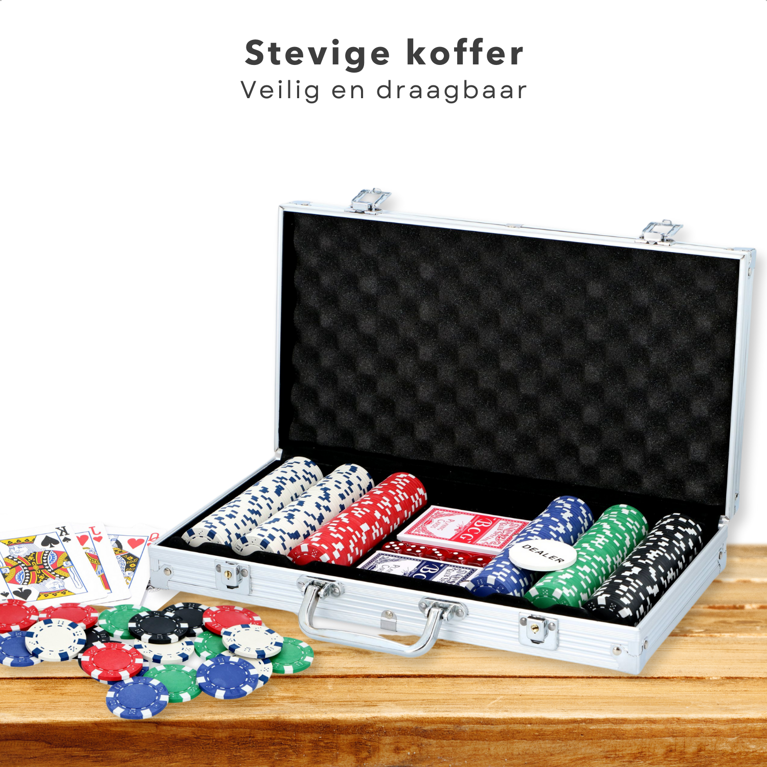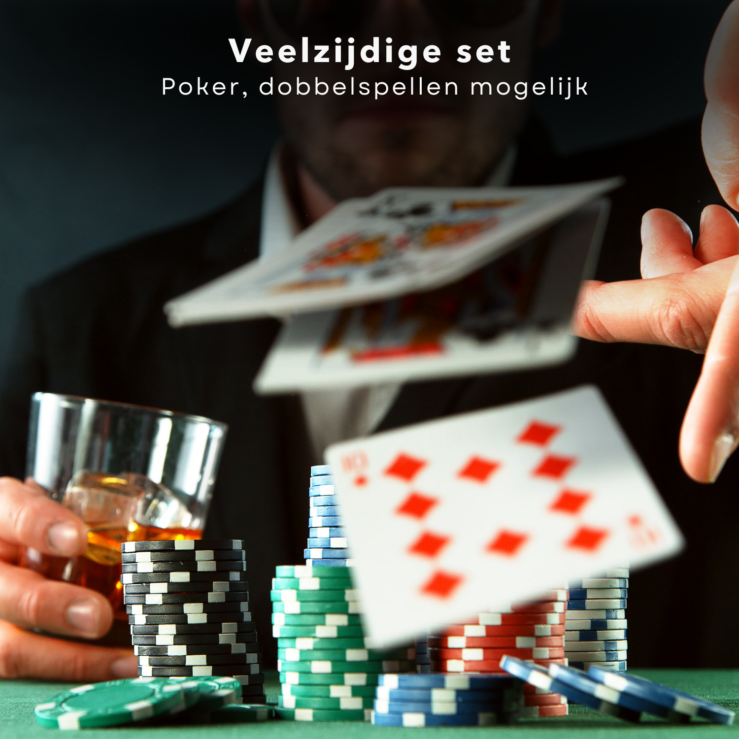 Cheqo® Pokerset Aluminium Koffer - Pokeren - Poker Set met 300 Fiches - Poker Spel voor 5 Personen - Inclusief Dobbelstenen en Kaarten
