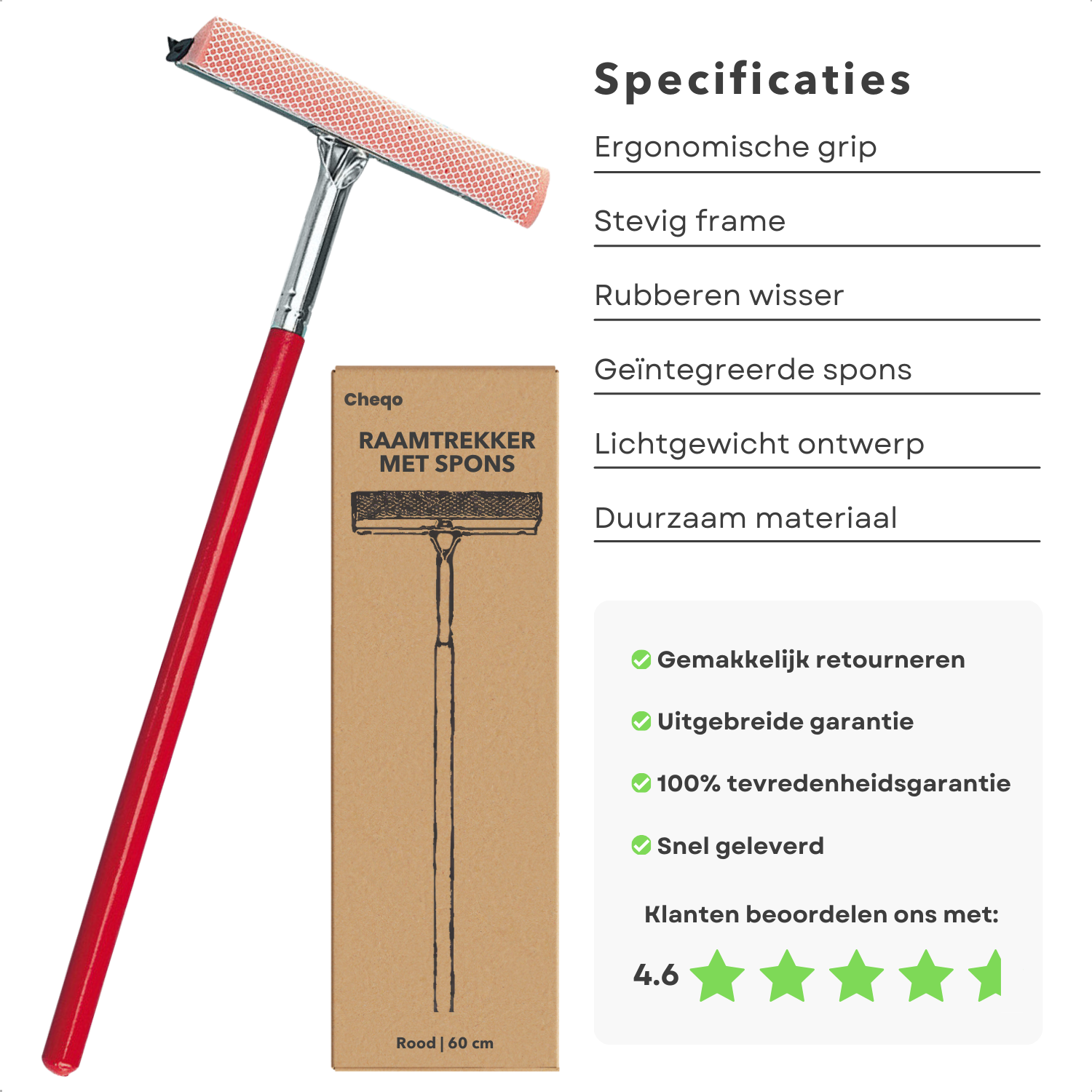Wacht niet langer en ervaar het gemak van de Cheqo® Raamtrekker Met Spons. Bestel nu en geniet van een streeploze reiniging!