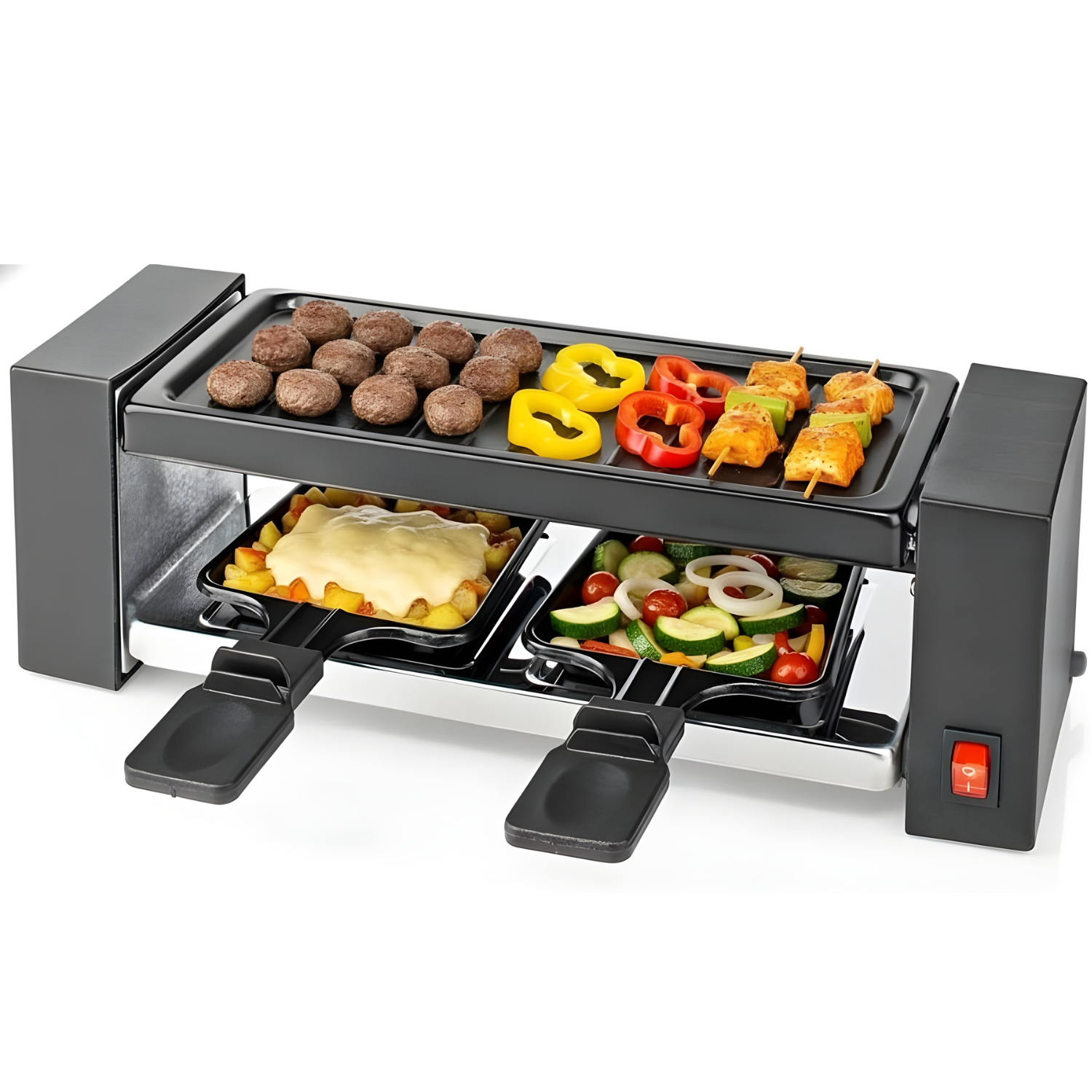 Cheqo® Raclette Grill - Gourmet Set - Anti-Aanbaklaag Grillplaat - Compacte Grill - Anti-Slip Voetjes - Mini Pannetjes - Zwitserse Raclette - Kerst Gourmet Set - Gourmetten - Grill Plaat - Gourmetstel