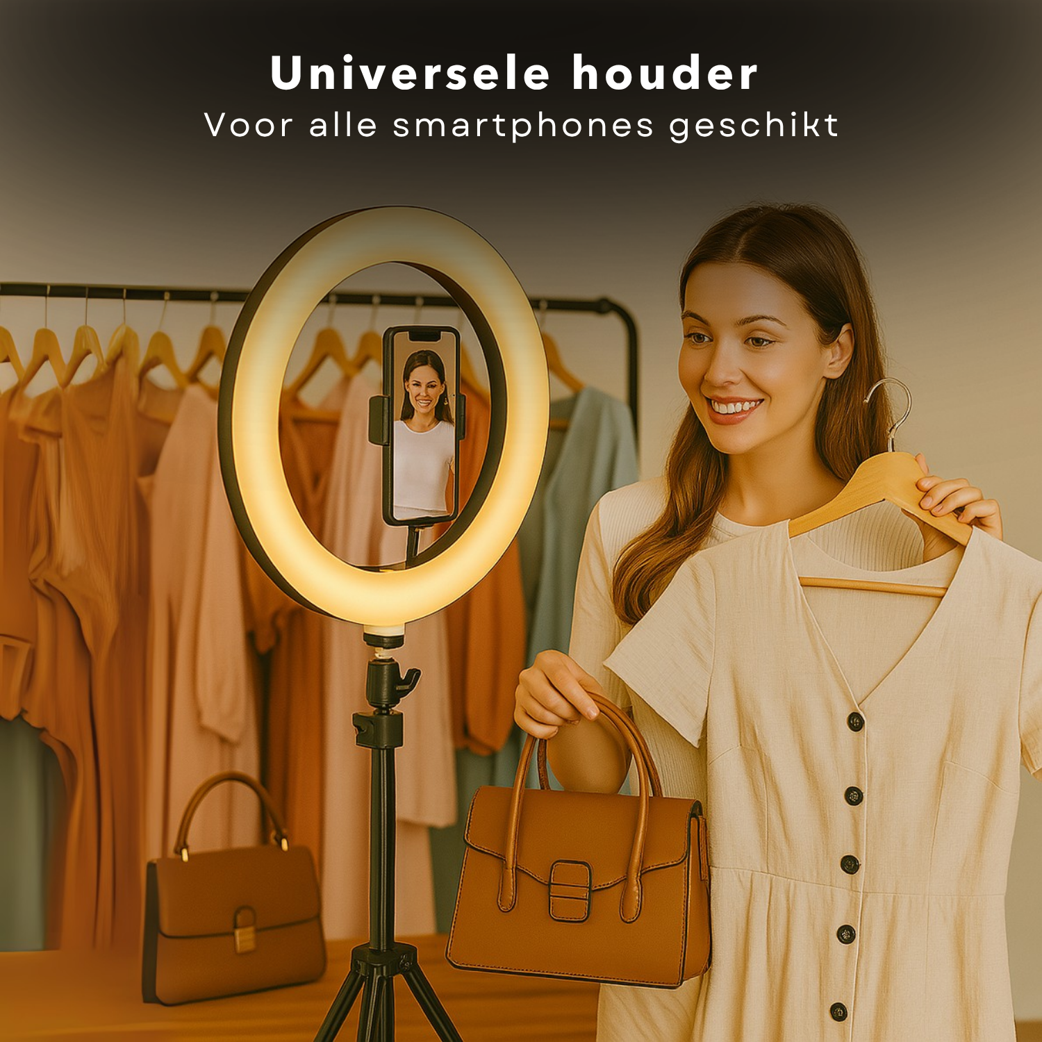 Maak professionele content met de Cheqo® Ringlamp met Statief – dé ultieme selfie ringlight voor TikTok, Instagram Reels, vlogs en... Lees meer