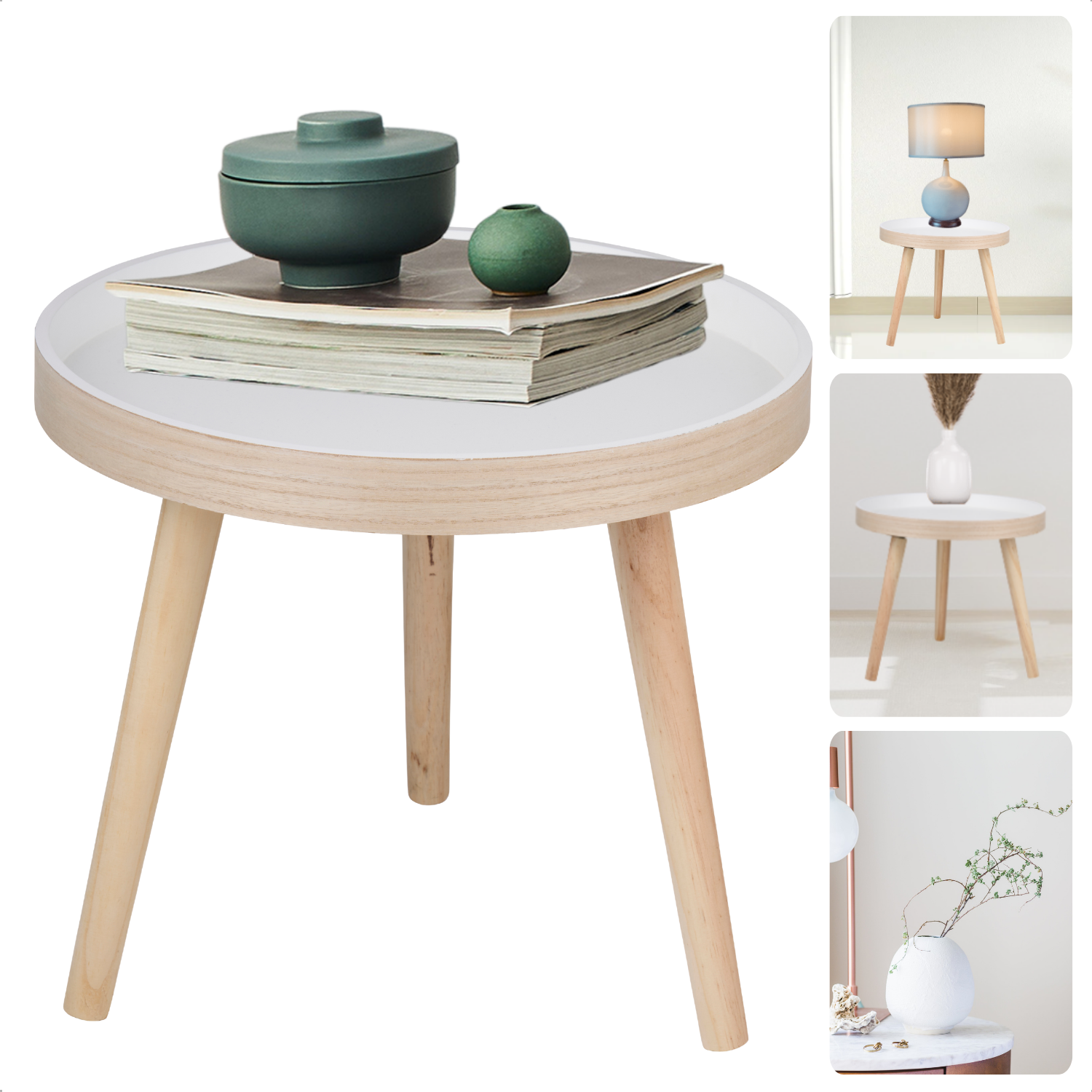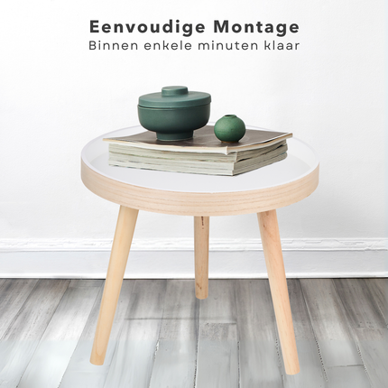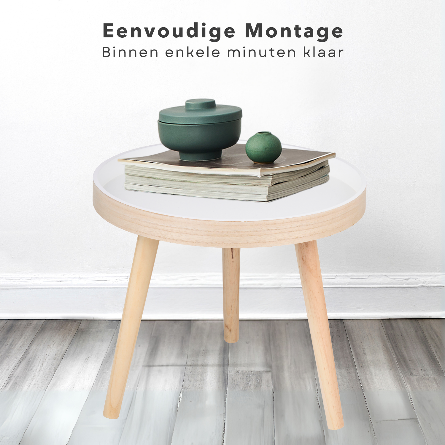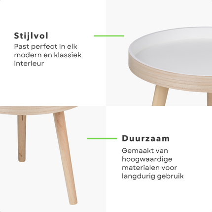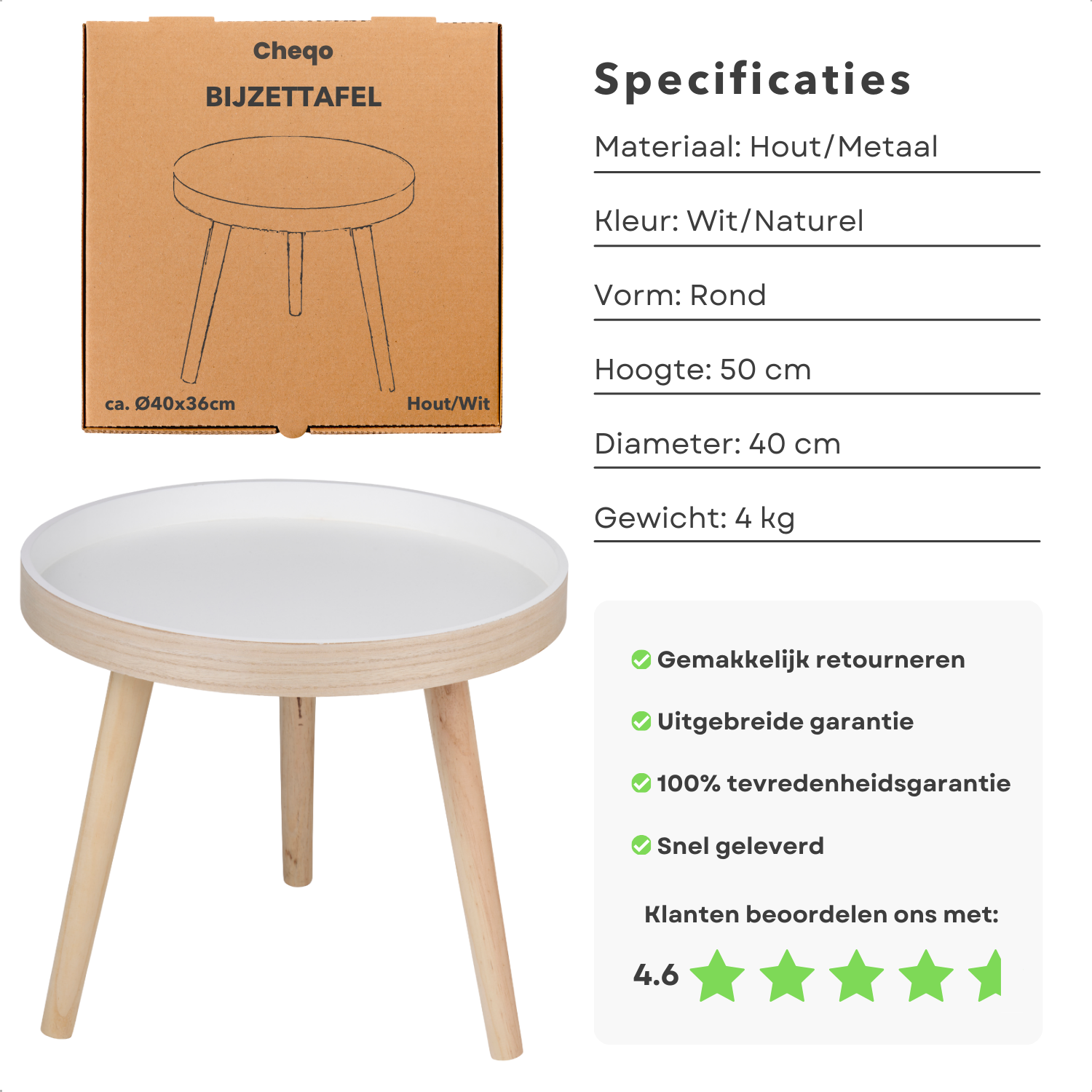 Cheqo® Ronde Bijzettafel Wit - Nachtkastje - Rond Tafeltje - Bijzet Tafel - Salontafel - Modern Design - Hout - Stijlvol en Functioneel