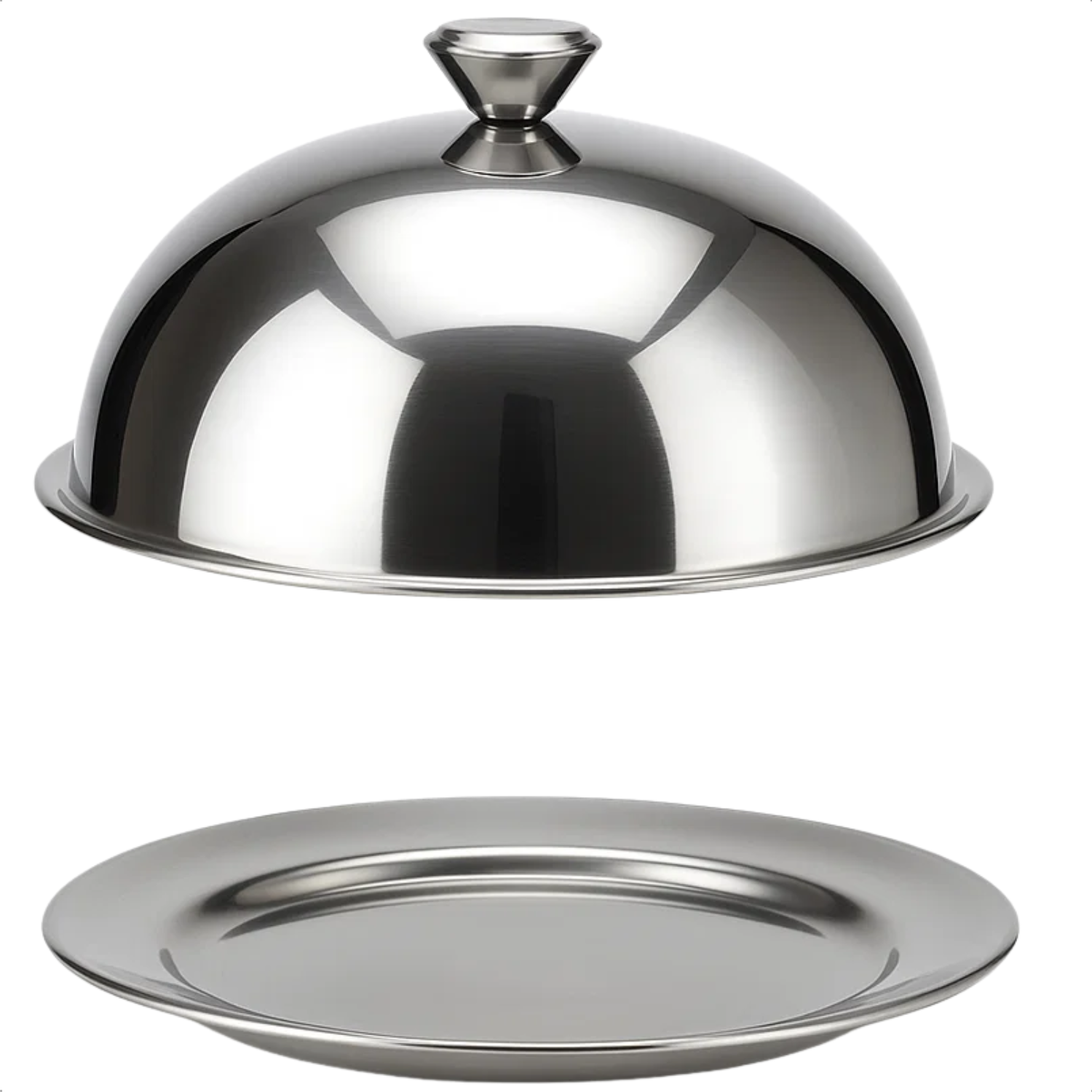 Cheqo® RVS Stolp - Serveerschaal Met Deksel - 30 cm Diameter - Voedsel Presenteren - Taartstolp - Kaas En Gebak - Snacks Serveren - Glanzend Roestvrij Staal - Stolp Met Onderbord - Ronde Serveerschaal
