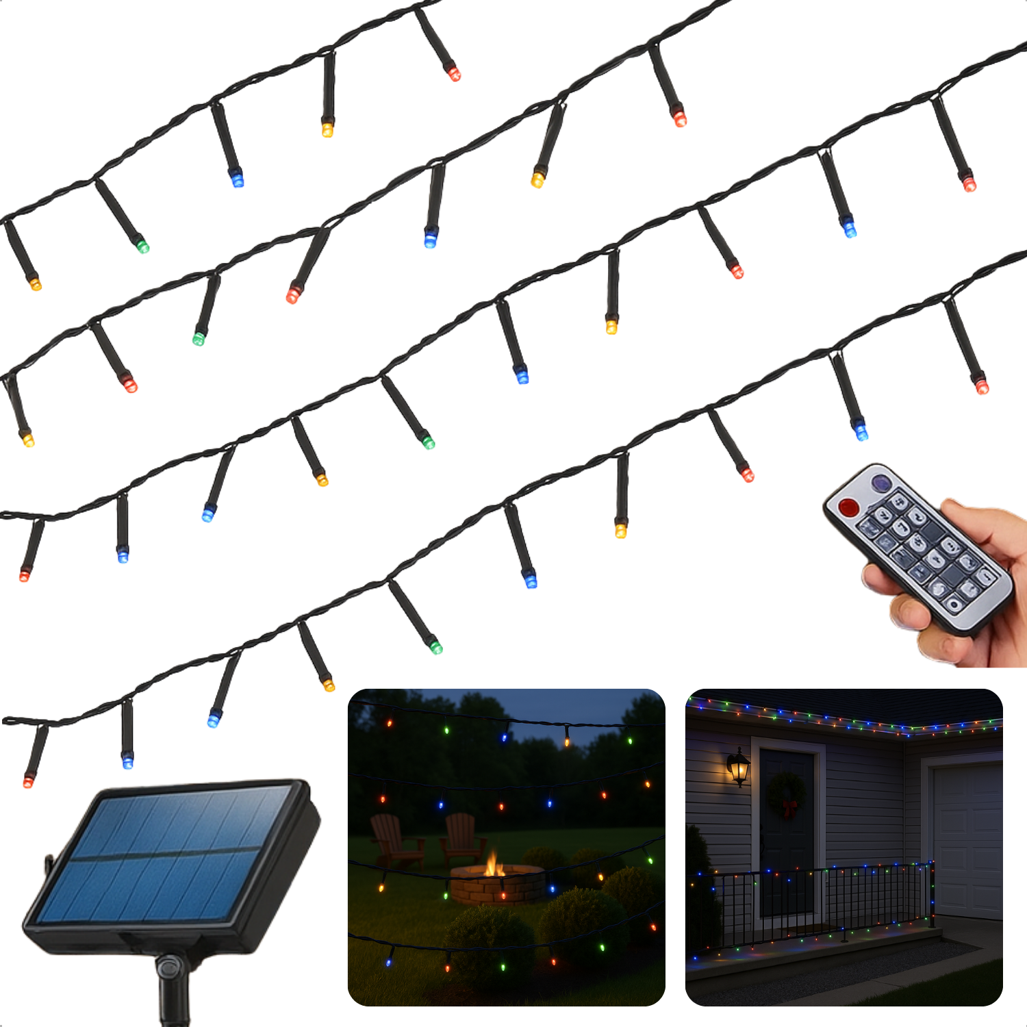 Cheqo® Solar Lichtsnoer - Kerstverlichting Buiten - Kerstboomverlichting - Cluster Verlichting - 10.5 Meter - 240 Led - Met Afstandsbediening - Multicolour - Tuinverlichting Op Zonne-Energie - Sfeerverlichting Buiten - Lichtslinger - Met Timer