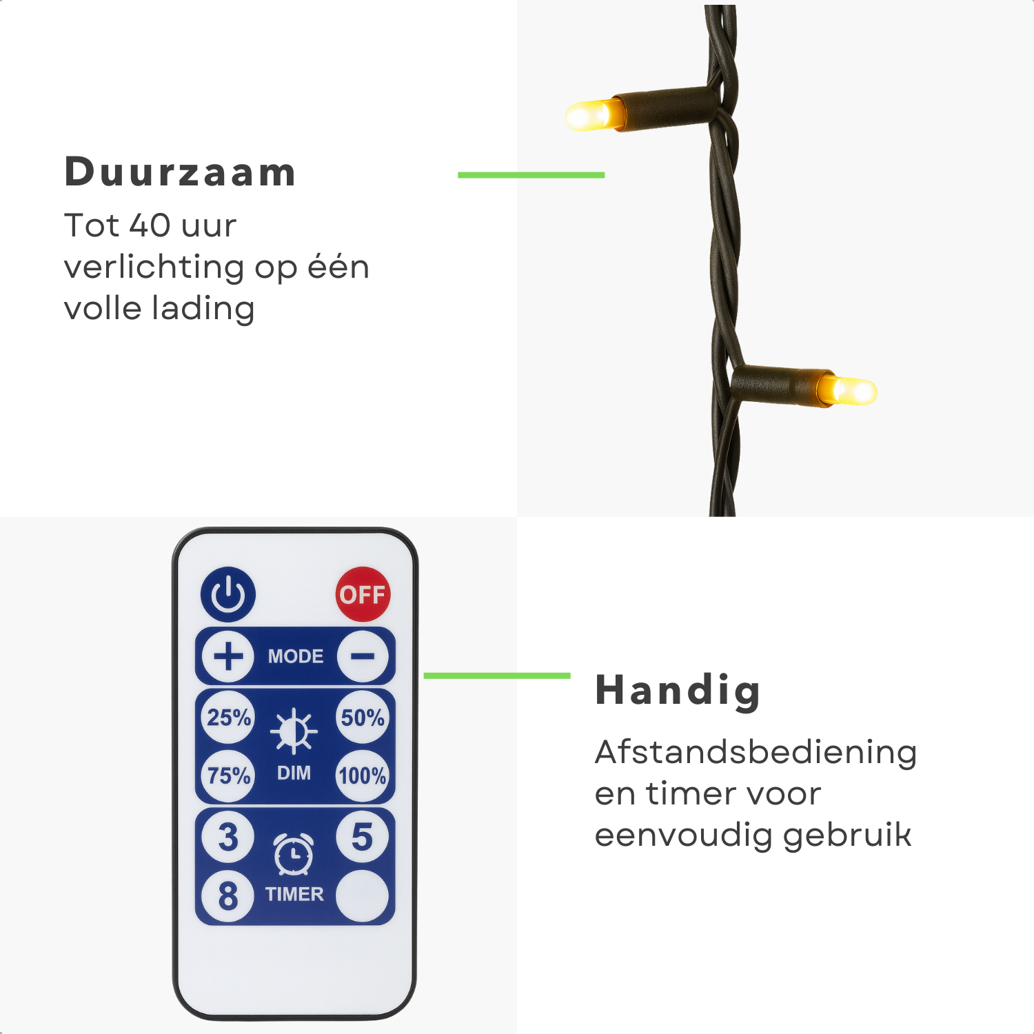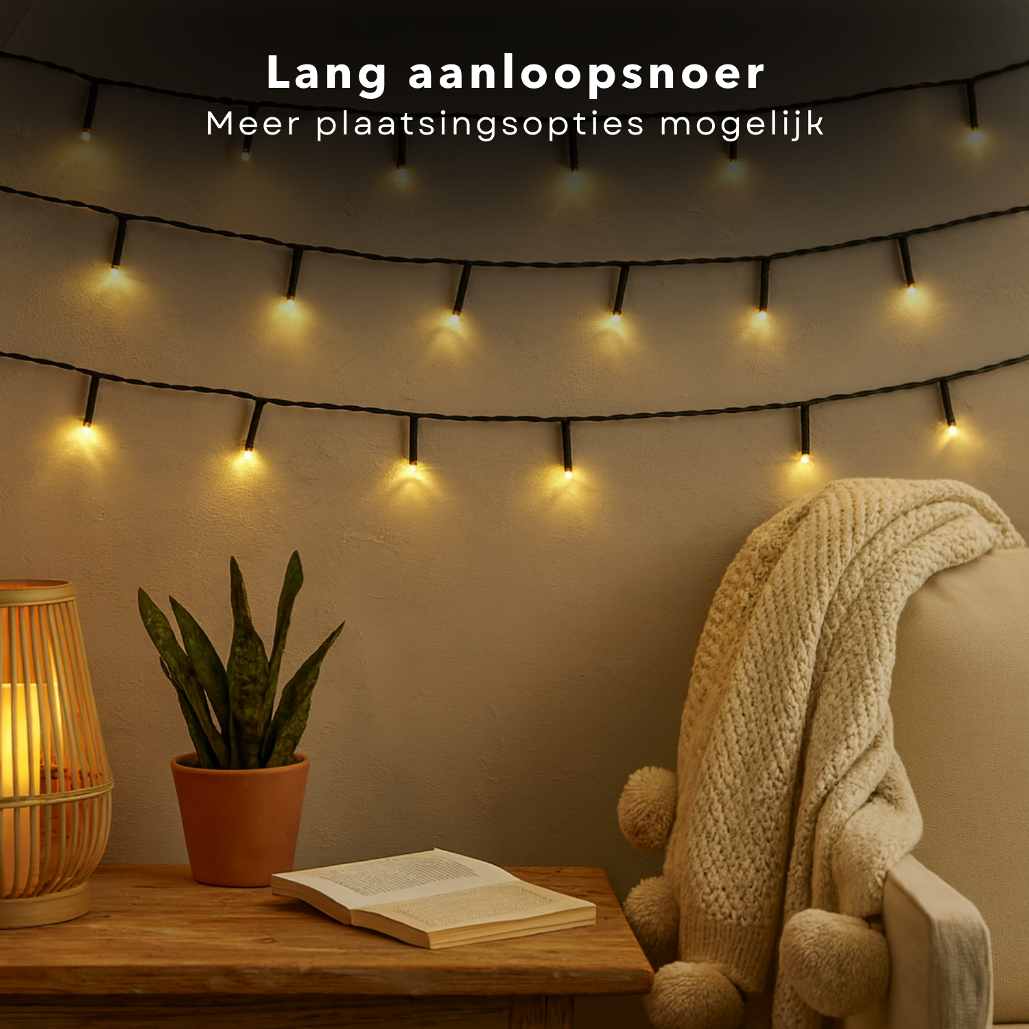 Creëer direct een warme, uitnodigende sfeer in tuin, balkon of terras met dit 10.5 meter lange lichtsnoer met 240 warmwitte... Lees meer
