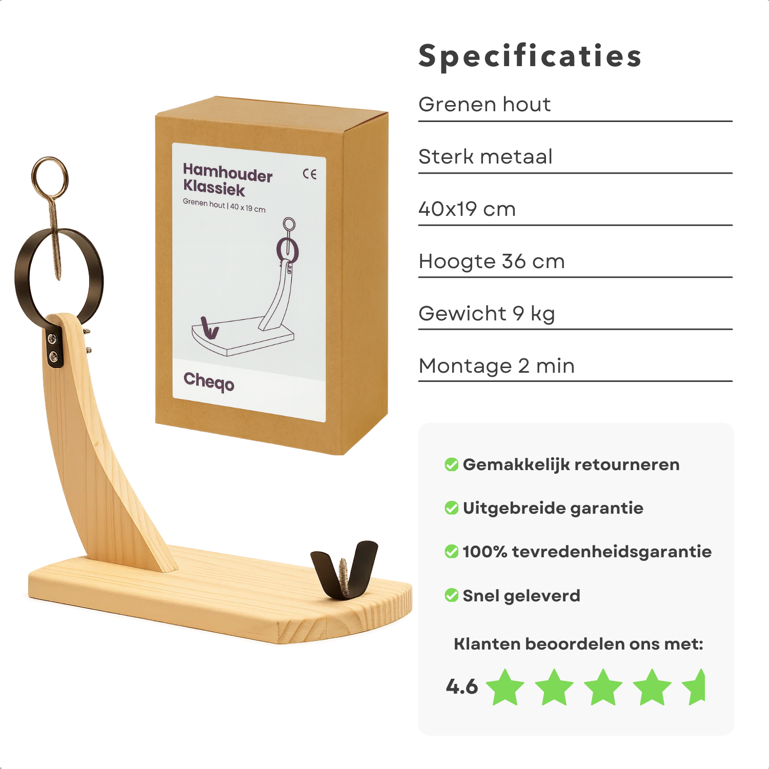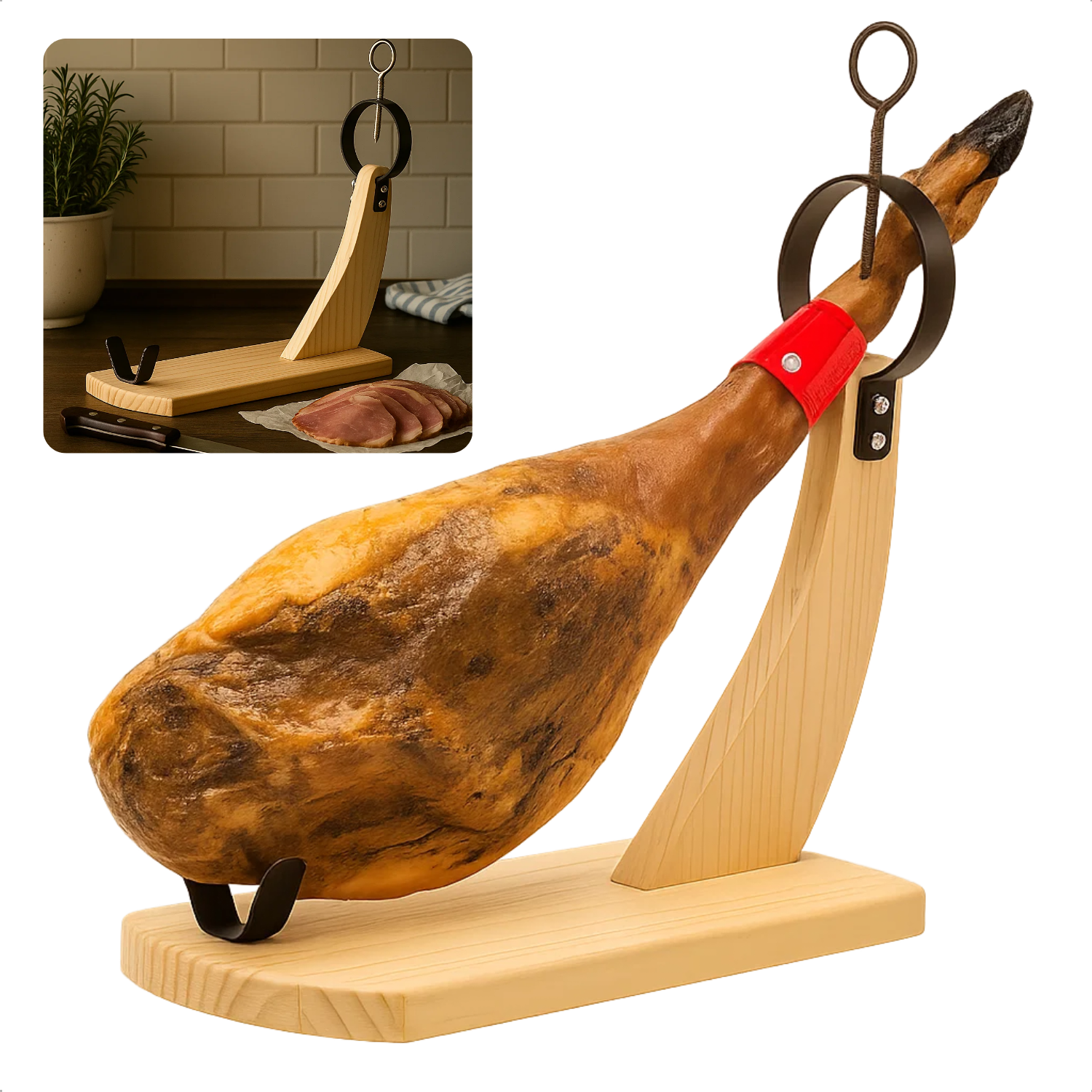 Cheqo® Spaanse Hamhouder - Geschikt voor 4 tot 9 KG - Grenen Hout en Metaal - Spaanse Ham Accessoires - Serrano Hamhouder - Hamhouder voor Keuken - Hamhouder voor Vlees - Hamhouder voor Paleta Curada
