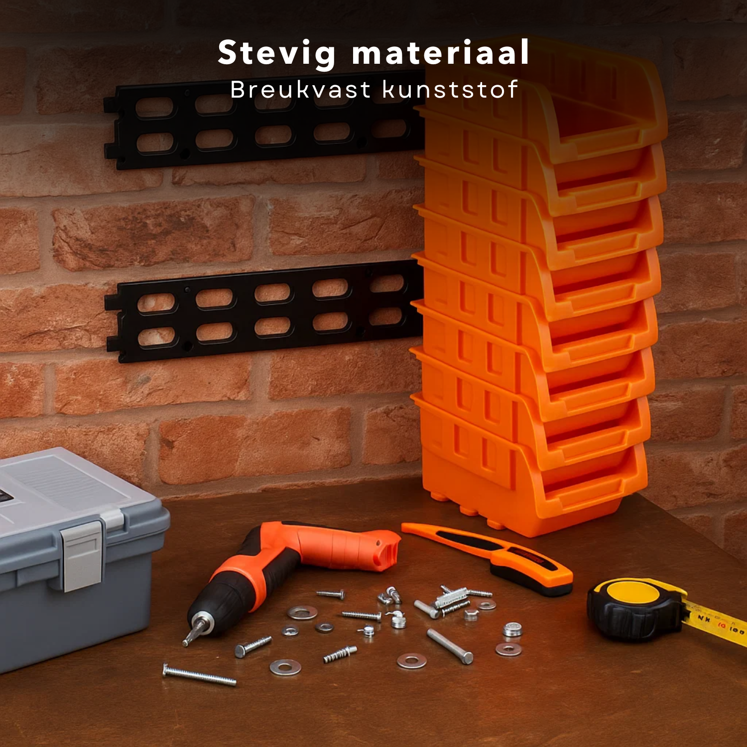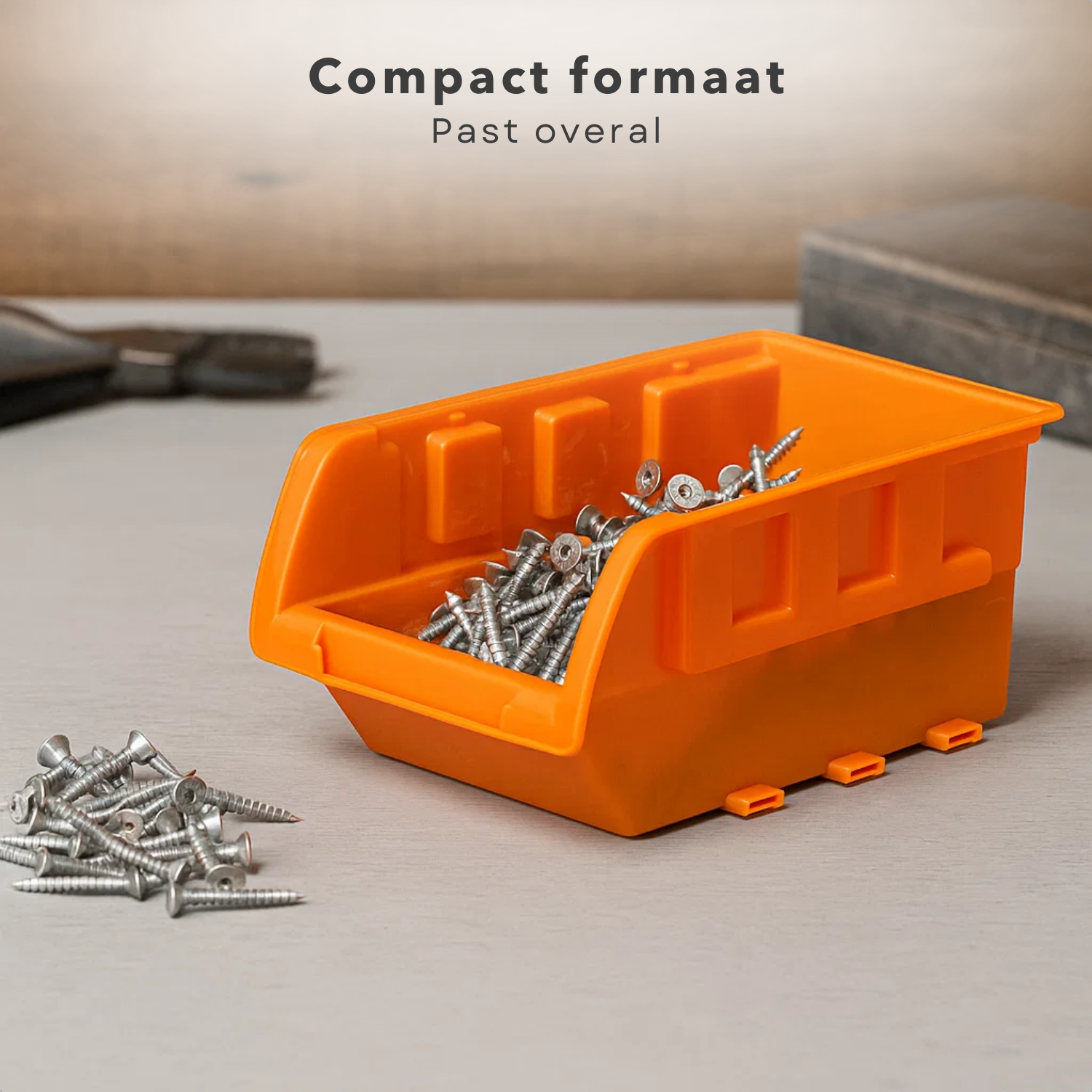 Cheqo® Stapelbare Sorteerbakjes - Opbergbakjes Oranje - Set Van 8 Stuks - Kantoorbenodigdheden Opbergen - Hobbyartikelen Organizer - Sieraden Opbergen - Kostbaarheden Sorteren - Veelzijdige Opbergoplossing - Ruimtebesparend Ontwerp