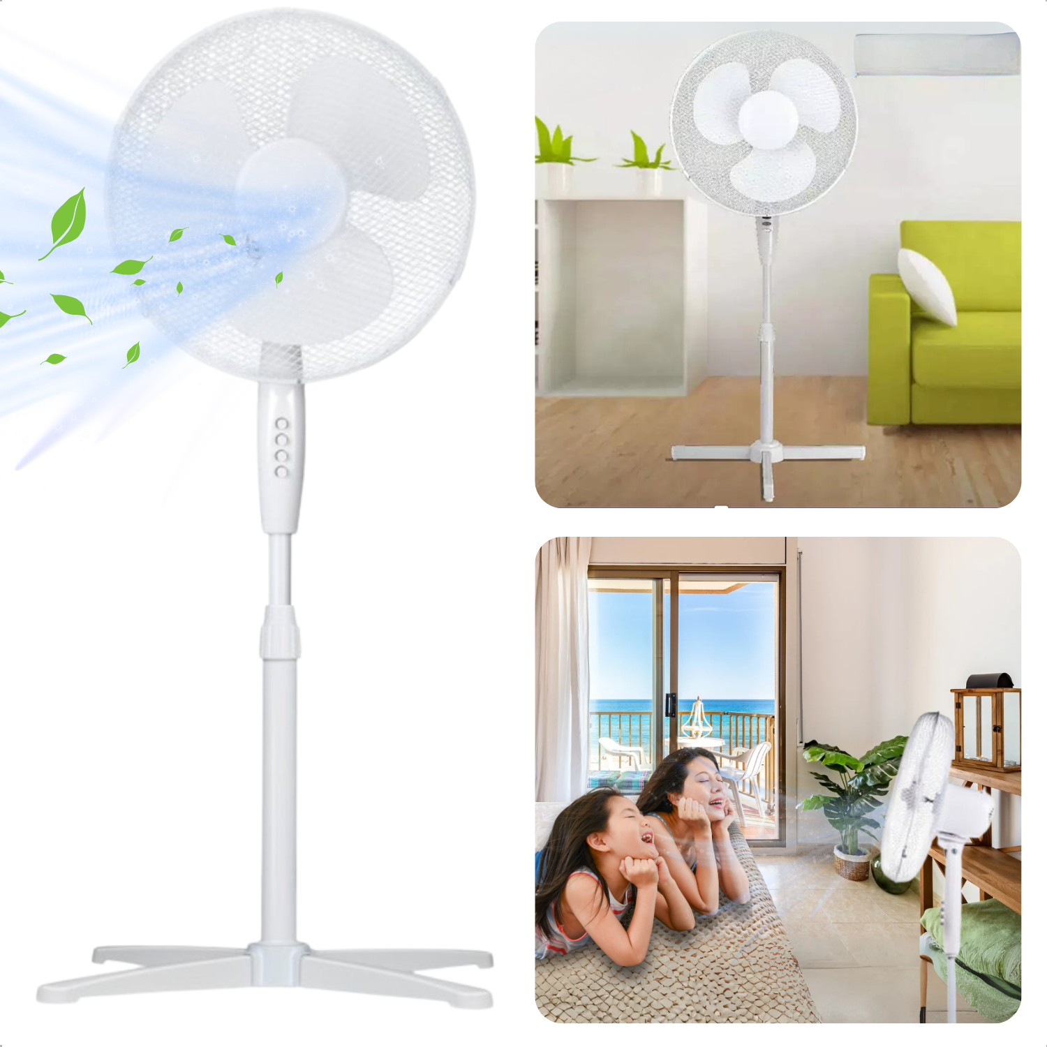 Cheqo® Ventilator - Statiefventilator - Koelventilator Woonkamer - 45W Verstelbaar - Airco Alternatief - Wit Design