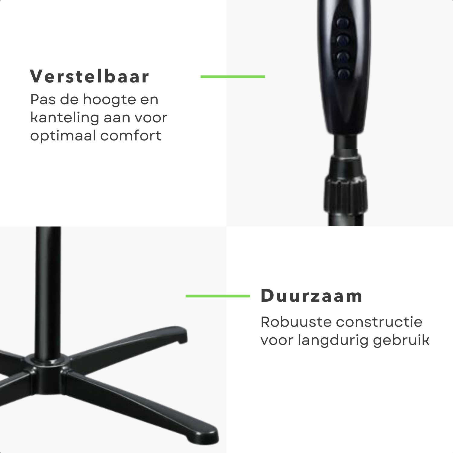 Geniet van een verfrissende bries met de Cheqo® Statiefventilator. Deze stijlvolle zwarte ventilator van 40 cm is perfect voor warme... Lees meer