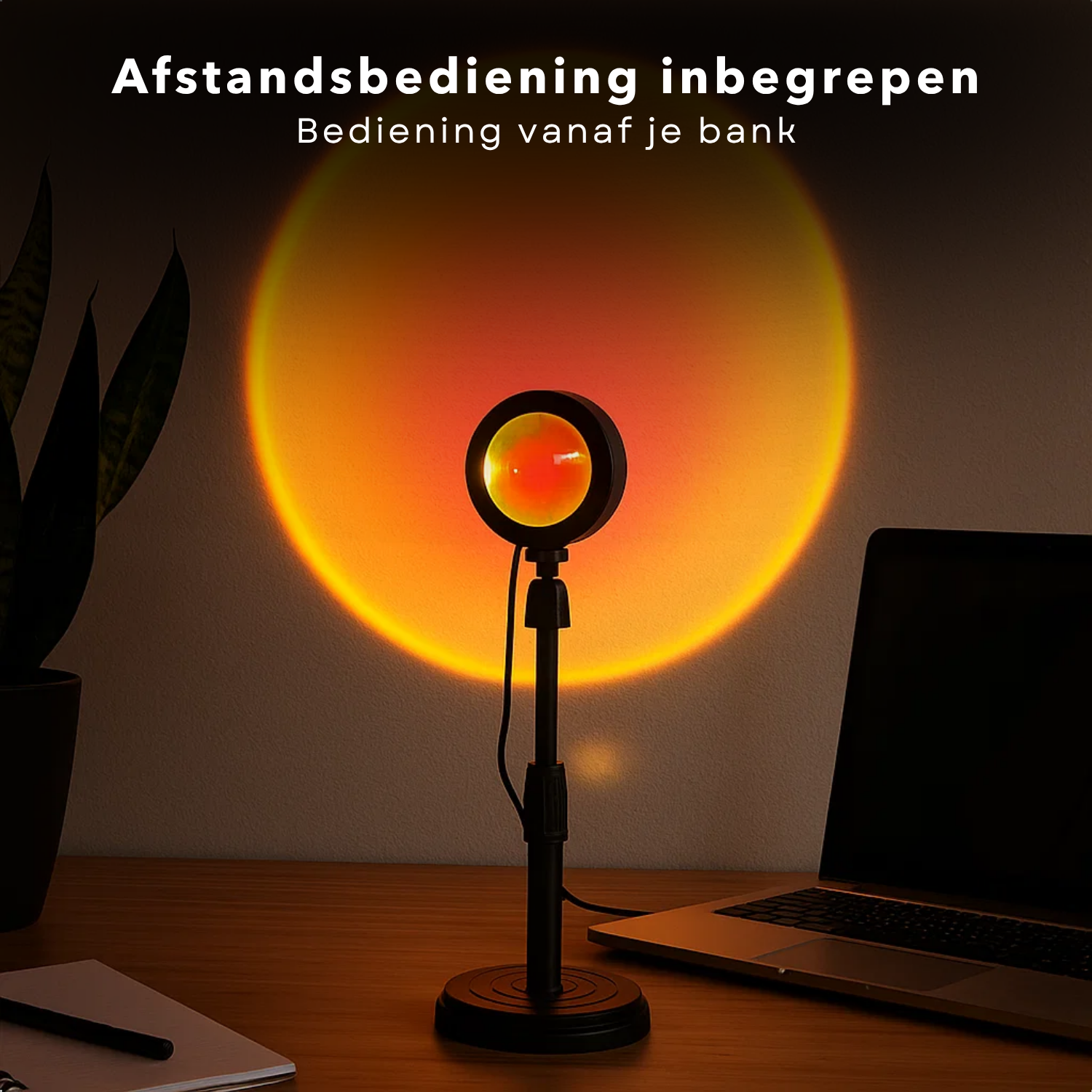 Cheqo® Sunset Lamp - 16 Kleuren - LED Projectorlamp - Afstandsbediening - Sfeerverlichting - RGB Lamp - Dimbare LED - USB-A Aansluiting - Verstelbare Hoogte - Tafellamp - Nachtlamp - Decoratief Sfeerlicht - Zonsondergang Projectie