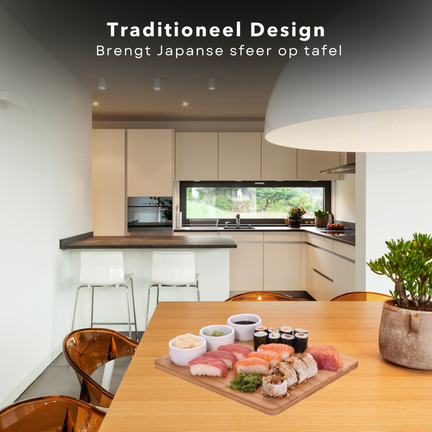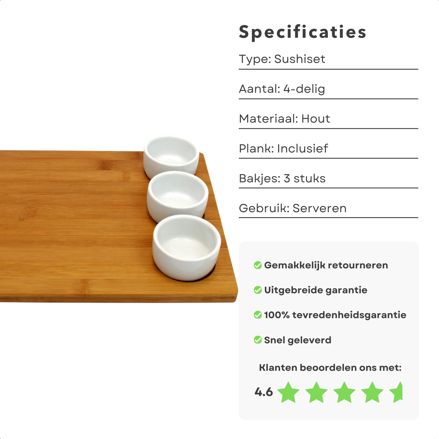 Cheqo® Japanse Sushi Servies Set - Sushi Set - Sushiset 4-Delig - Houten Plank met Bakjes - Serveerplank voor Sushi