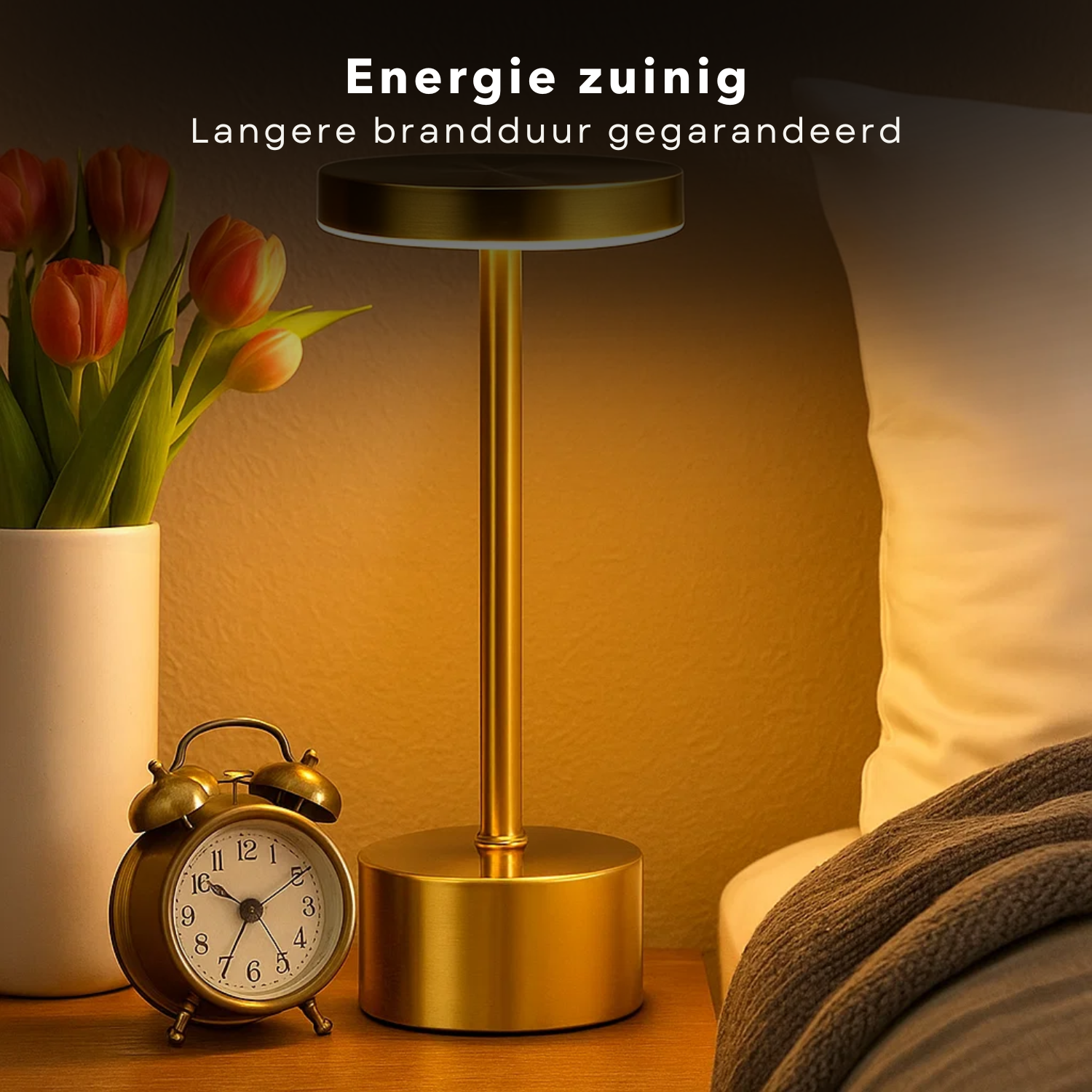 Cheqo® Gouden Tafellamp Oplaadbaar - Draadloos En Dimbaar - Touch Lamp - Nachtlamp Slaapkamer - Usb Oplaadbaar - Dimbare Tafellamp - Moderne Touch Lamp - LED Tafellamp - Tafellamp Zonder Snoer - Goud Tafellamp