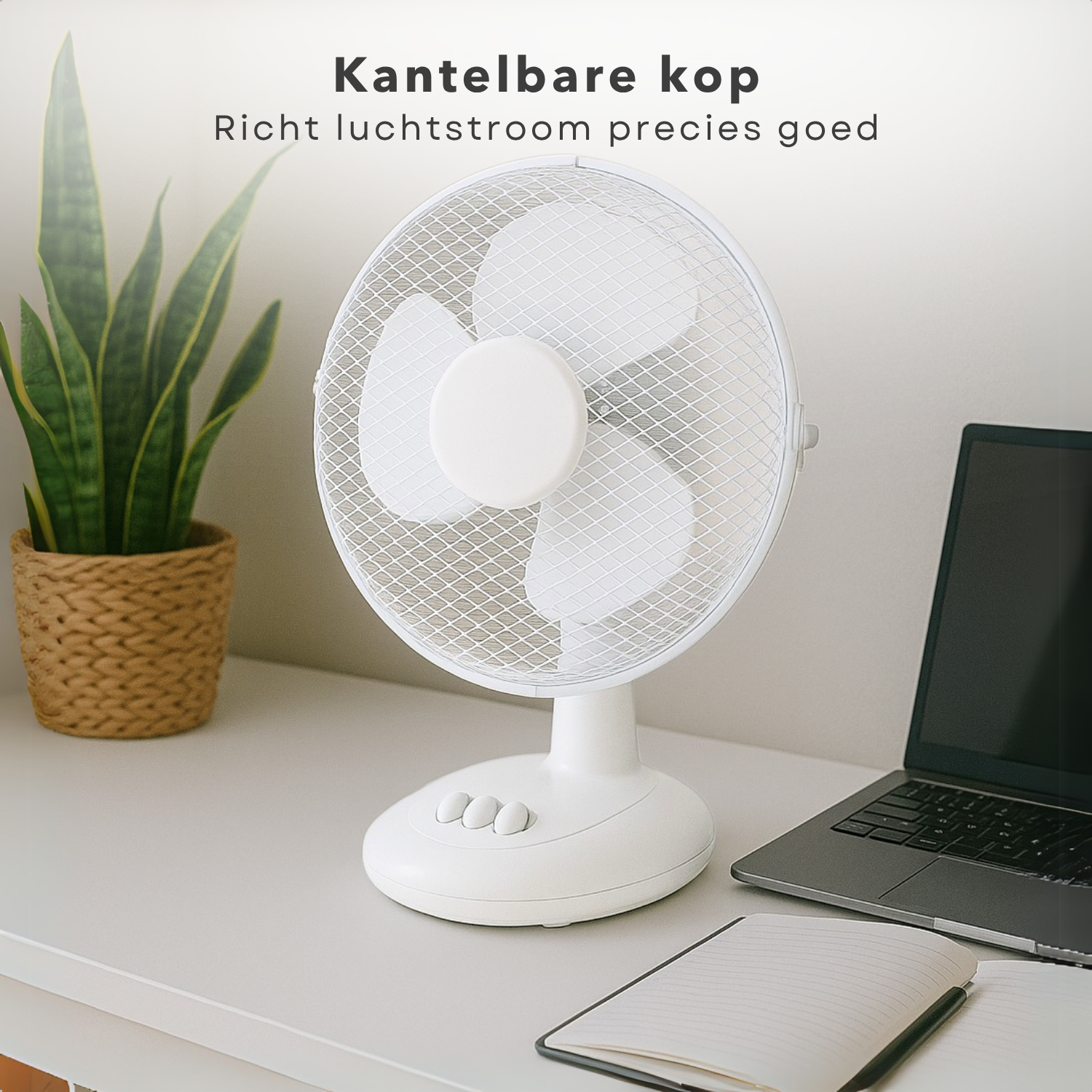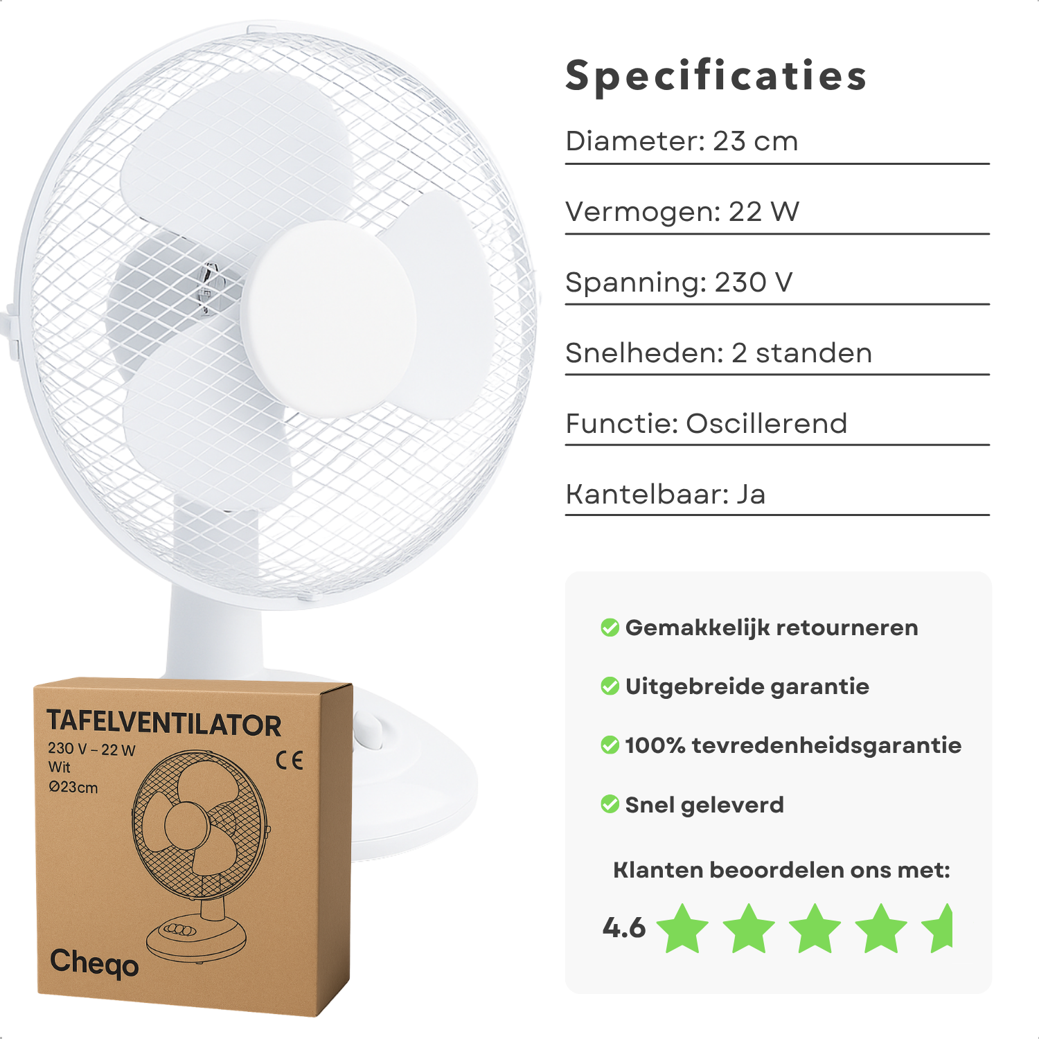 Cheqo® Tafelventilator - Stille Witte Ventilator Tafelmodel - Kantelbaar en Oscillerend - Verkoeling - Fan - Airco Alternatief