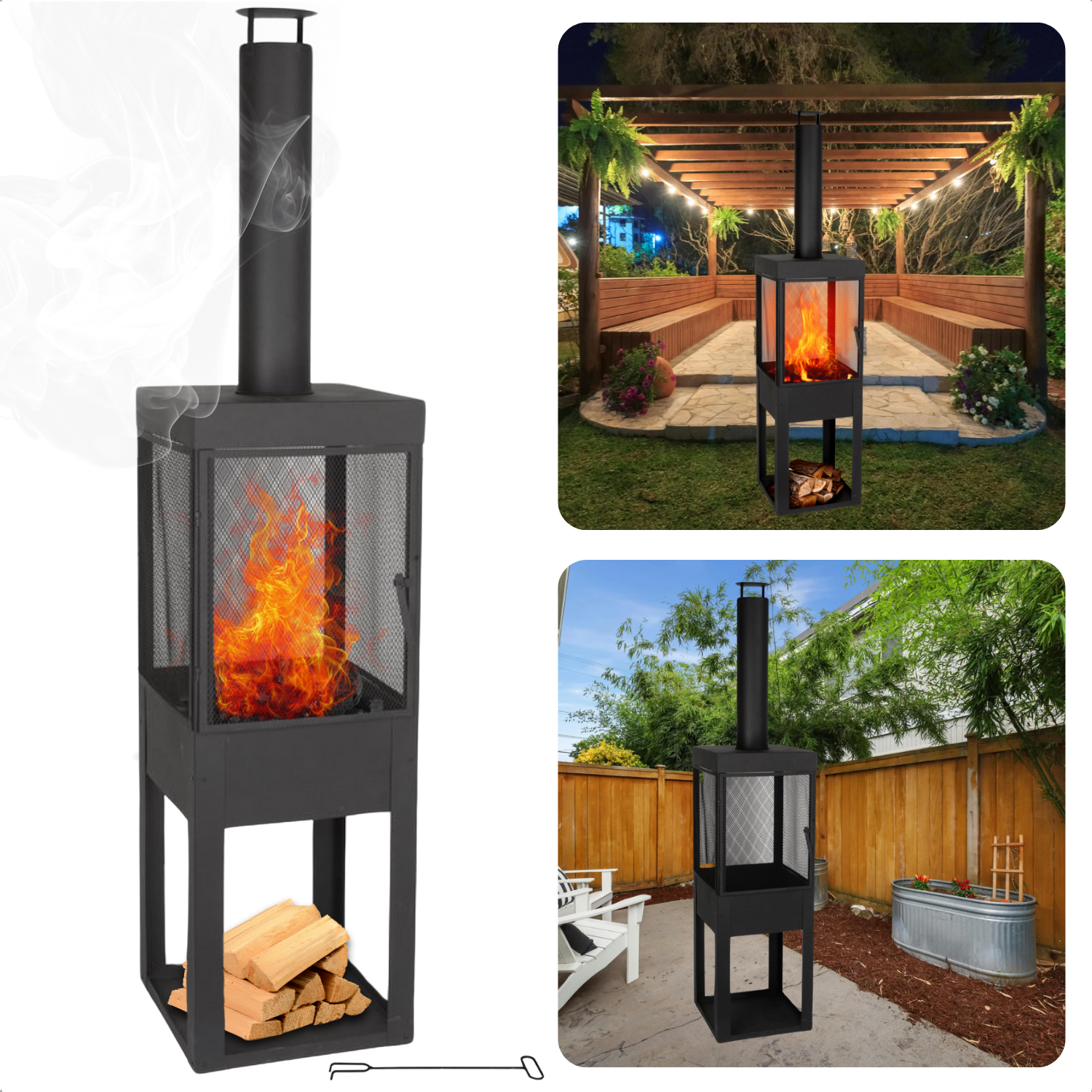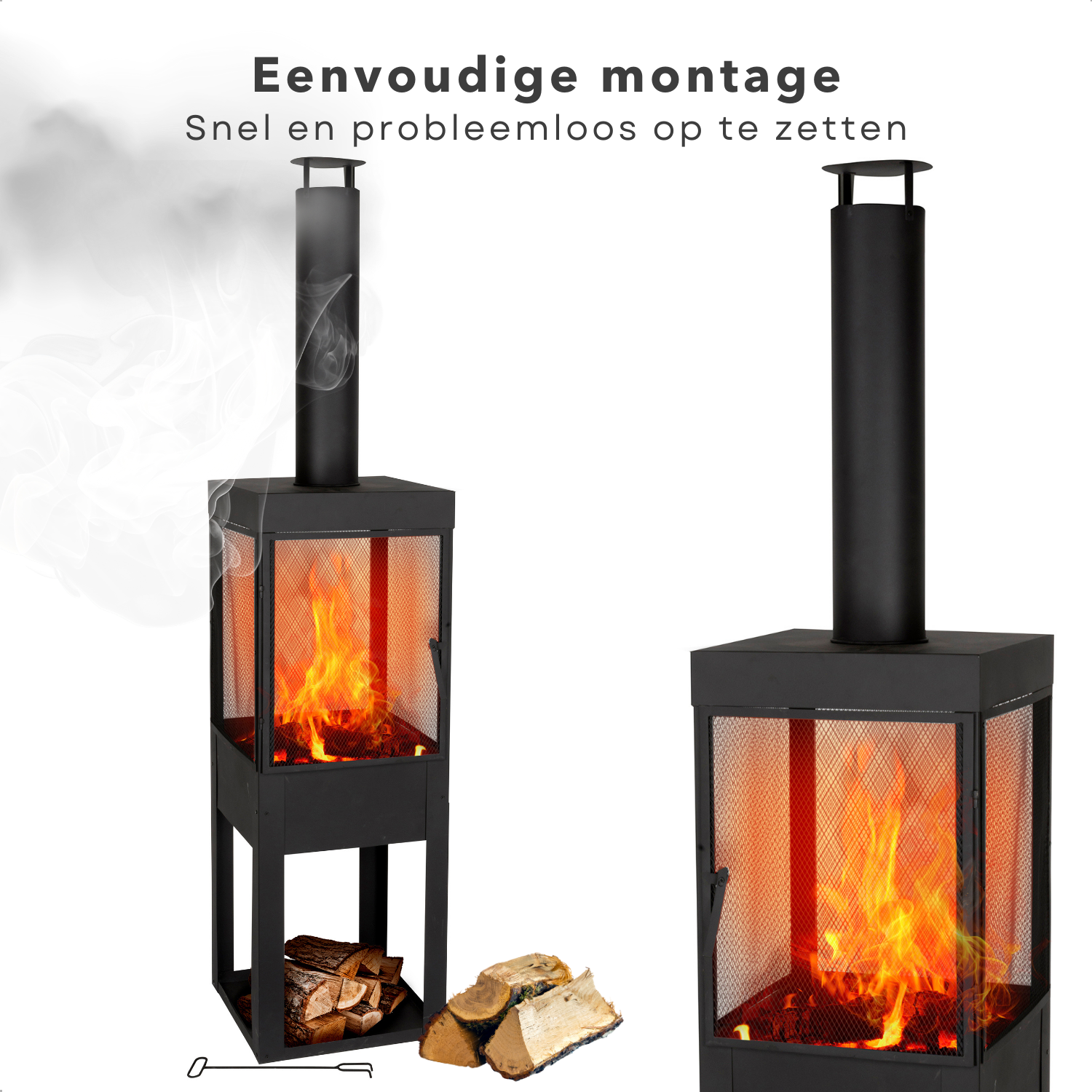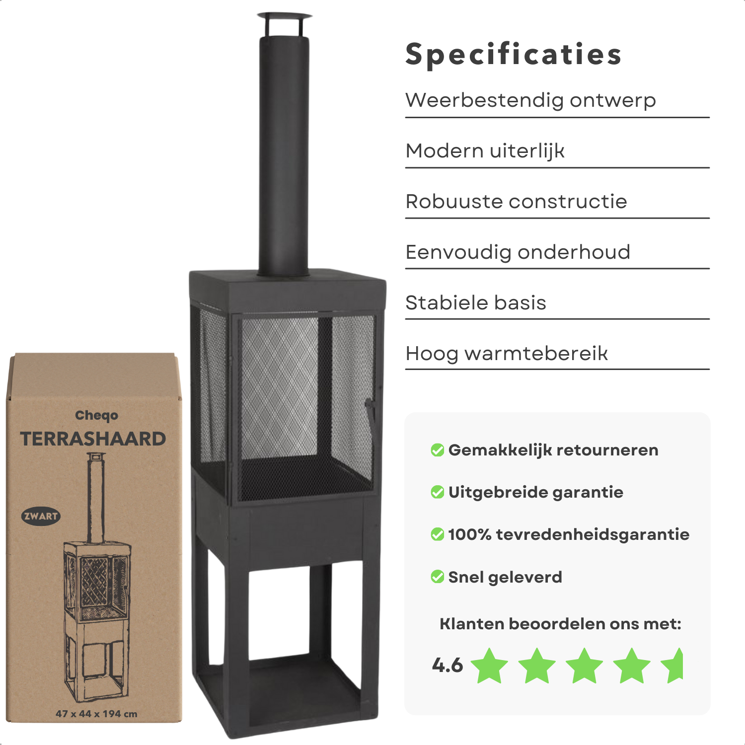 Cheqo® Terrashaard Metaal - Buitenhaard met Schoorsteen - Terrashaard - Terraskachel Modern Design - Vuurkorf Tuinhaard - Houtkachel - 195cm