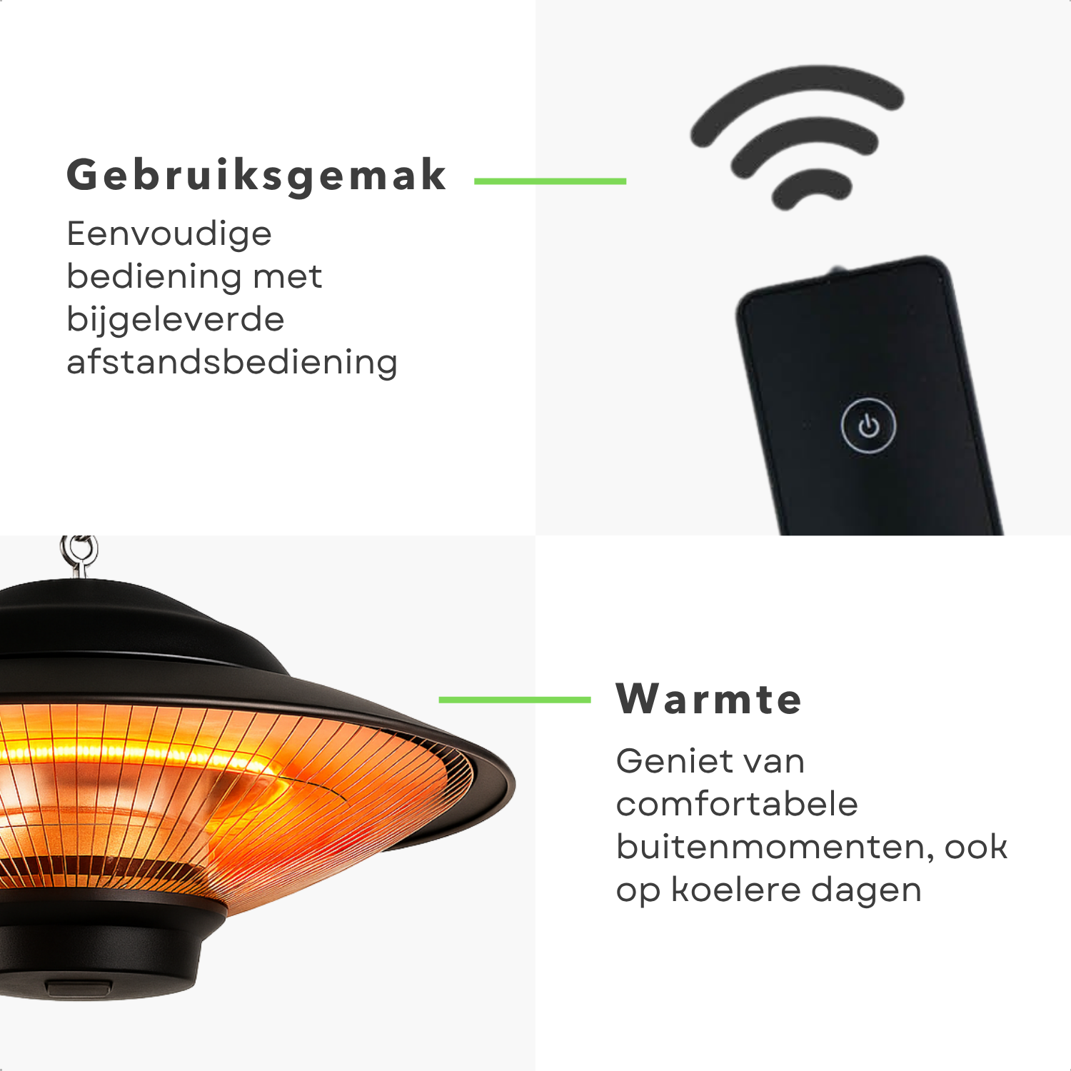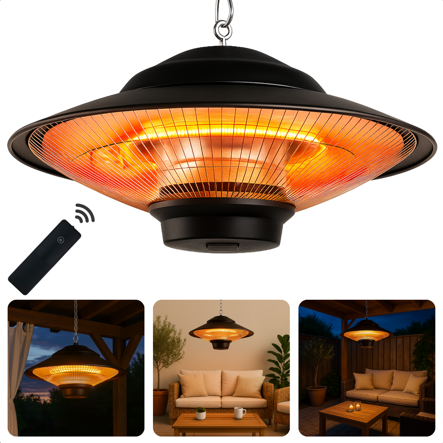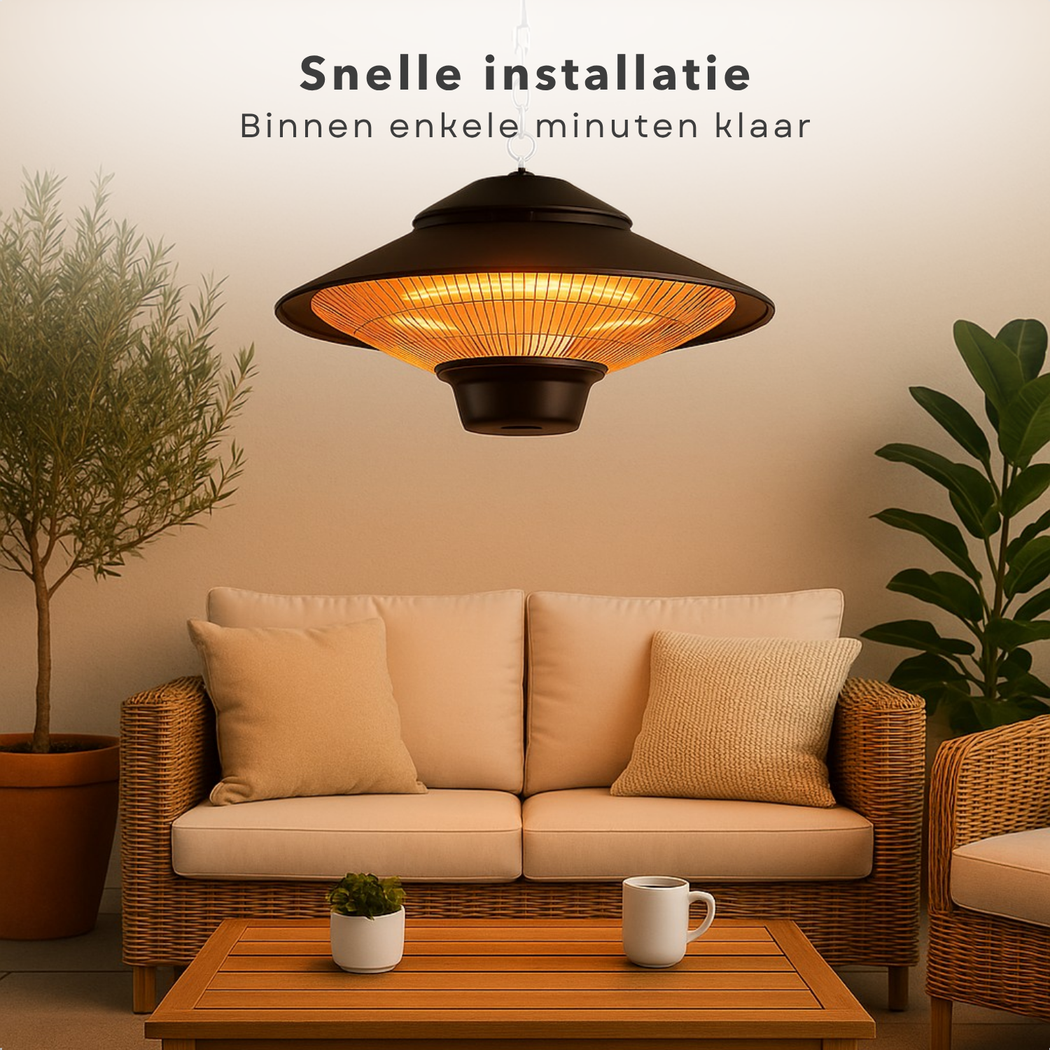 Cheqo® Terrasverwarmer - Terrasverwarming - Heater - Infrarood Verwarming - Plafondmontage - Halogeen Heater - Waterdicht met Afstandsbediening - Aluminium