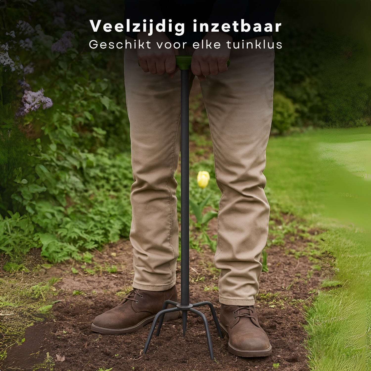 Cheqo® Tuinklauw Woelvork - Metaal - Tuinfrees - Onkruidsteker - Onkruidtrekker - Aarde Losmaken - Grond Beluchten - Kultiveren - Ergonomisch - Onkruid Wieden - Onkruidverwijderaar - Duurzaam en Efficiënt