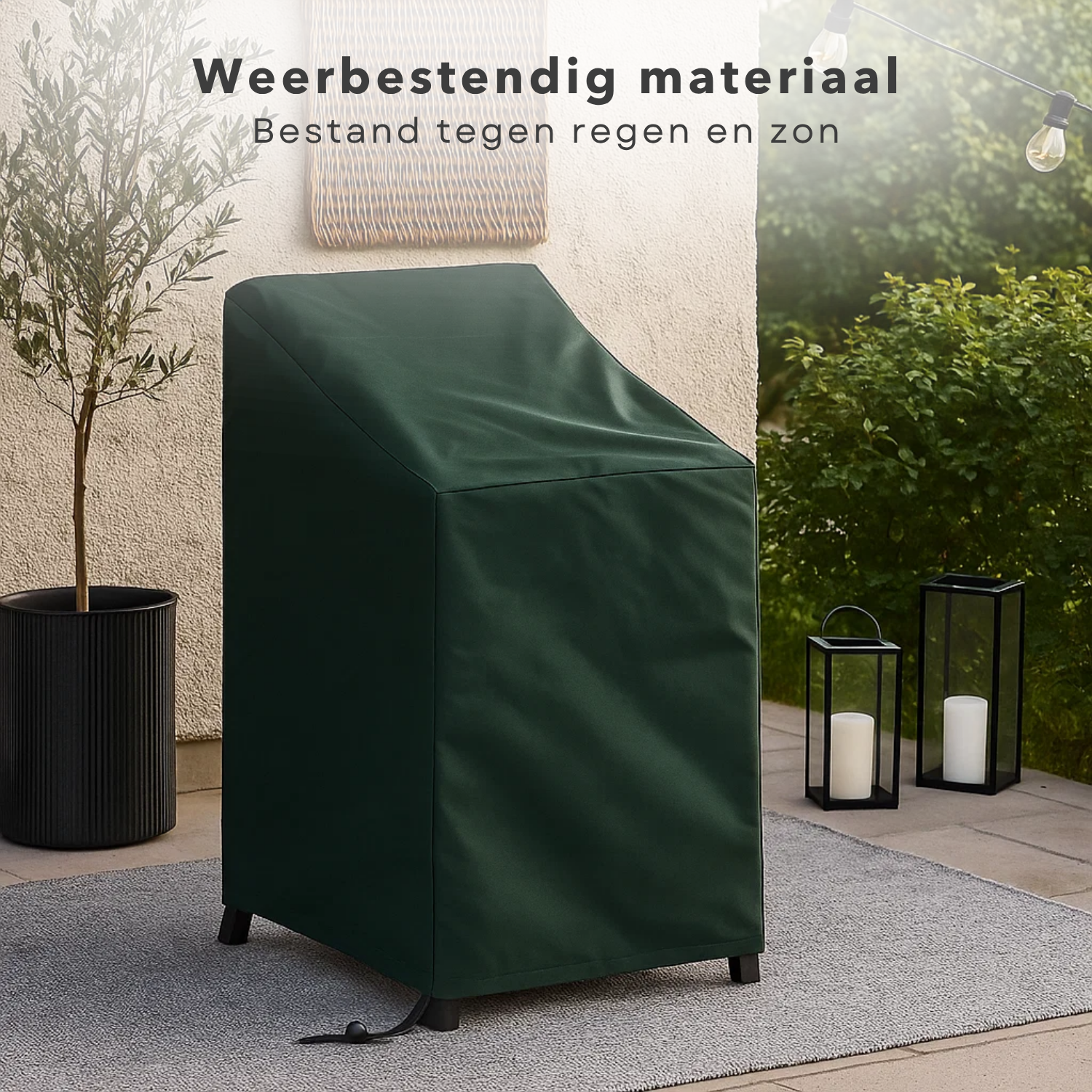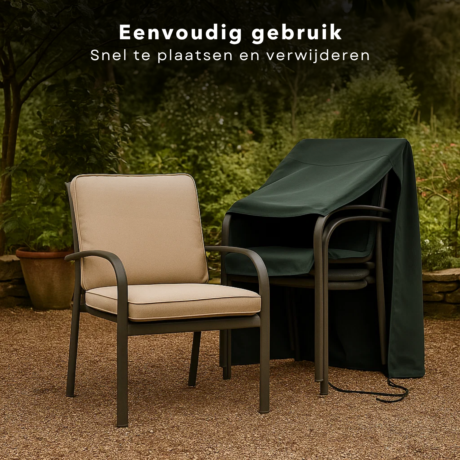 Cheqo® Tuinstoelen Afdekhoes - Tuinmeubelhoes - Stapelstoelhoes - Zwart - Outdoor Stoelhoes - Voor Buitengebruik - Stoelhoes Met Trekkoord - Hoes voor Tuinstoelen - Tuinstoel Afdekhoes - Meubeulhoes