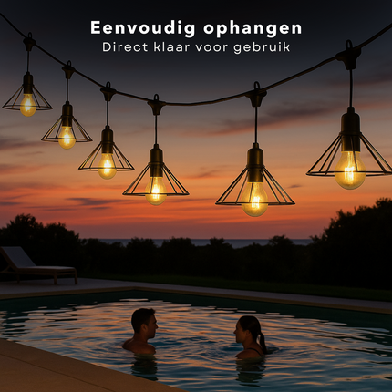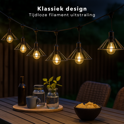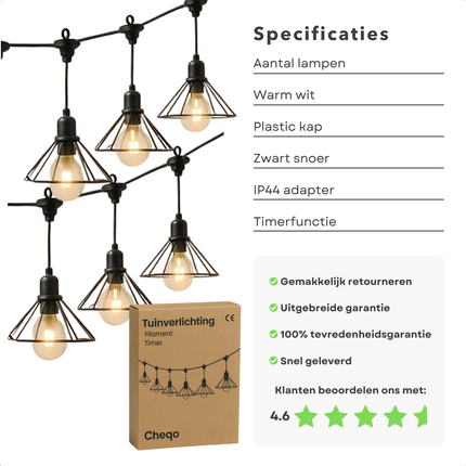 Cheqo® Tuinverlichting Lichtsnoer - Lichtslinger - Sfeerverlichting LED voor Buiten - Filament Lichtsnoer - Warm Wit - Timer - IP44 Buiten