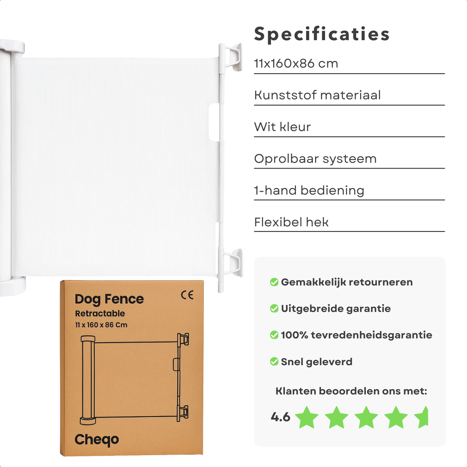 Cheqo® Uitschuifbaar Hondenhek - Flexibel Kunststof Hondenhek - Hondenhek Voor Binnen - Hondenhek Met Één Hand Bedienbaar - Traphekje Voor Honden - Uitschuifbaar Tot 160 cm - Hondenhek Zonder Hekwerk - Ruimtebesparend Hondenhek