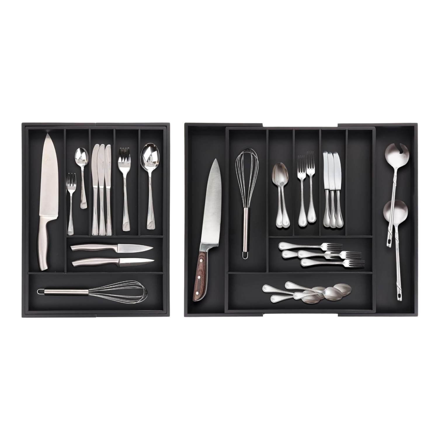 Cheqo® Uitschuifbare Bamboe Bestekbak - Besteklade - Keukenlade - Bestek Organizer - Verstelbare Keukenla Organizer - 33-52x43x5 cm - Zwart
