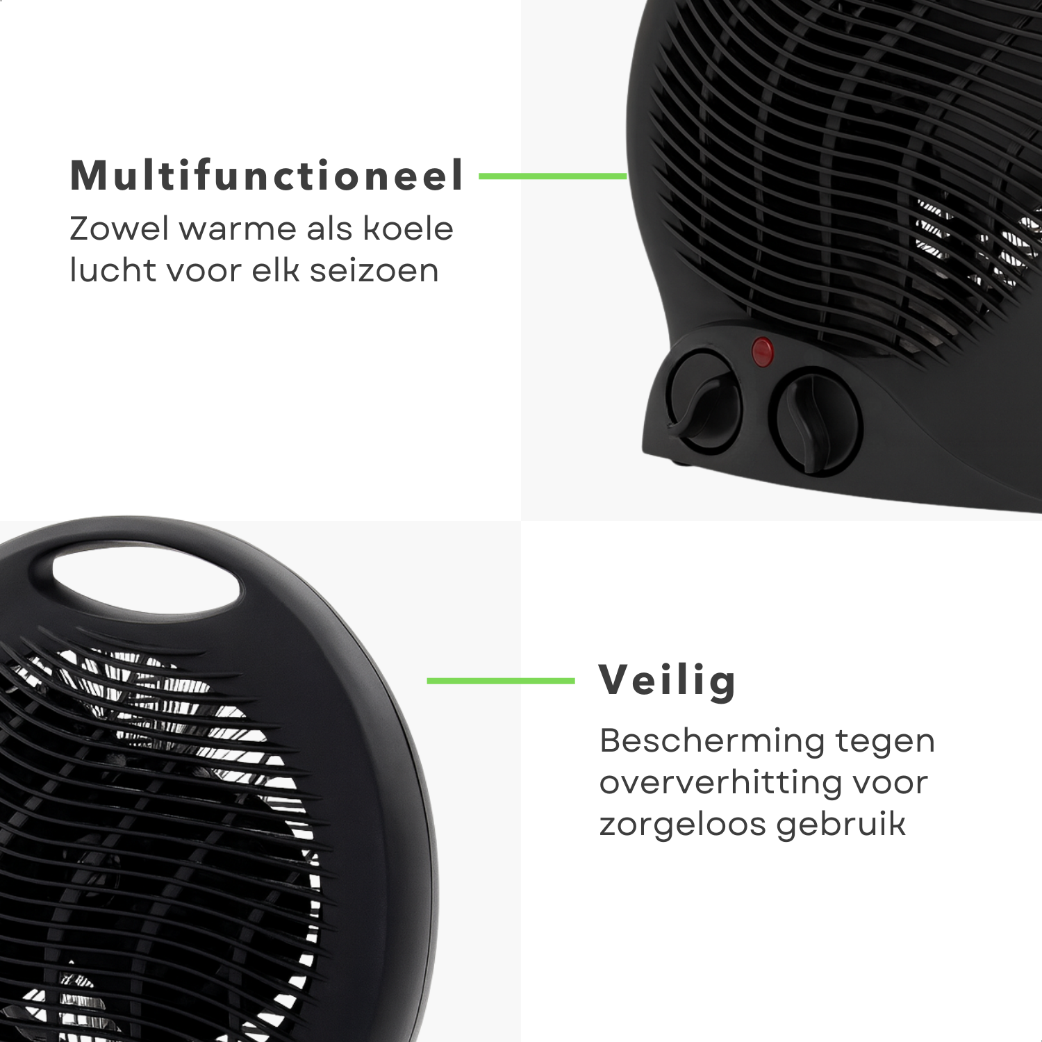 Cheqo® Ventilatorkachel - Compacte Kachel - Draagbare Verwarming - Warme En Koude Lucht - Heater - Verwarmer - Bureau Verwarming - Praktisch Handvat - Bijverwarming - Caravan Verwarming - Tent Verwarming