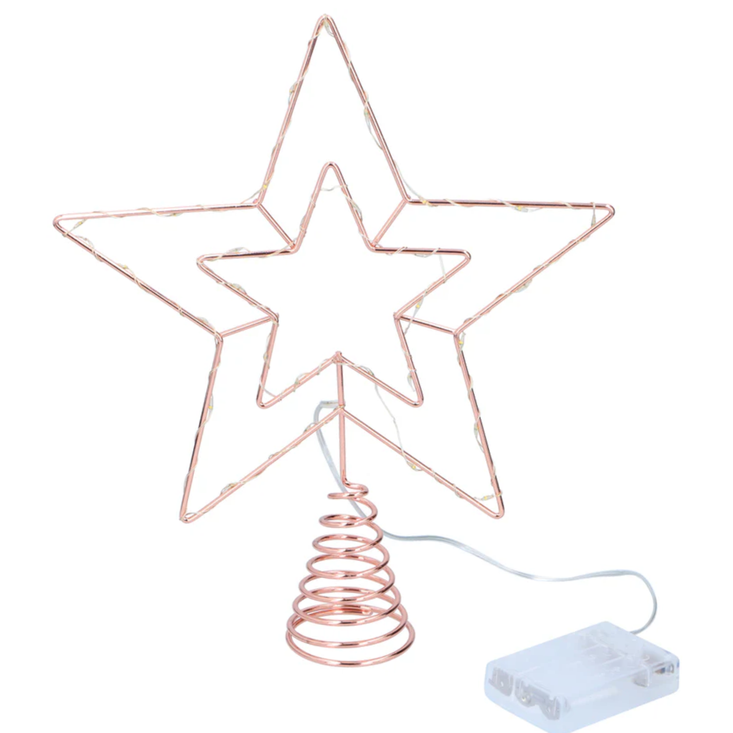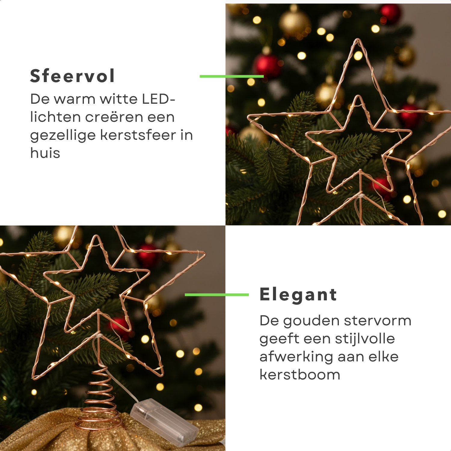 Cheqo® Verlichte Kerstboom Piek - Kerstboom Ster Piek - LED Kerstboom Topper - Gouden Kerstboompiek - LED Kerstster Piek - Kerstversiering Met Verlichting - 30 LED-Lichten - Op Batterij - Lichtgevende Piek voor Kerst - Warme Witte Verlichting