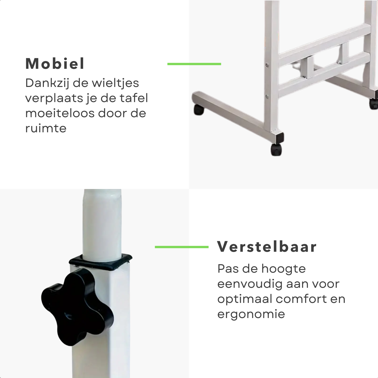 Cheqo® Cheqo® Verrijdbare Laptoptafel - Verrijdbaar Bureau - Computertafel - Laptop Standaard - Verstelbare Bedtafel - Banktafel - Bijzettafel - Laptop Tafel - Praktich