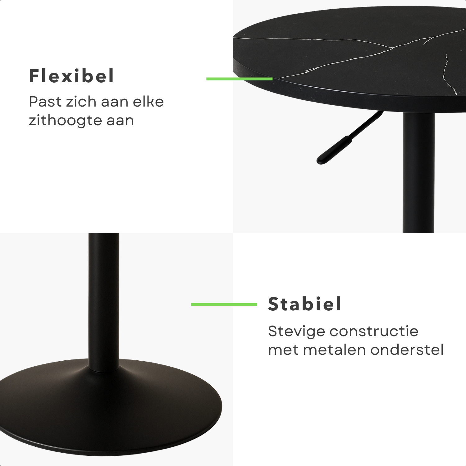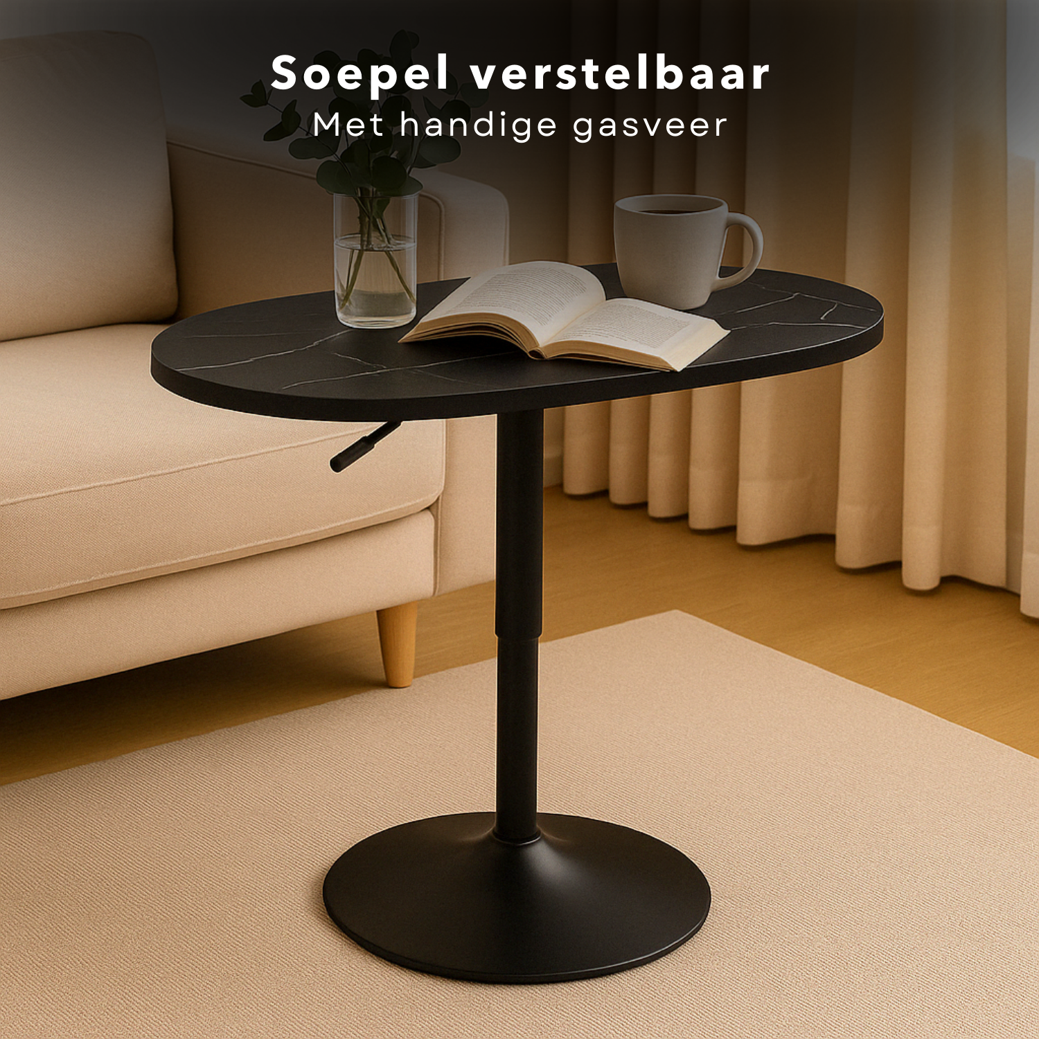 Cheqo® Luxe Bijzettafel Ovaal - Verstelbare Ovale Tafel - Marmer Look - Salontafel Draaibaar - MDF & Metaal - Zwart