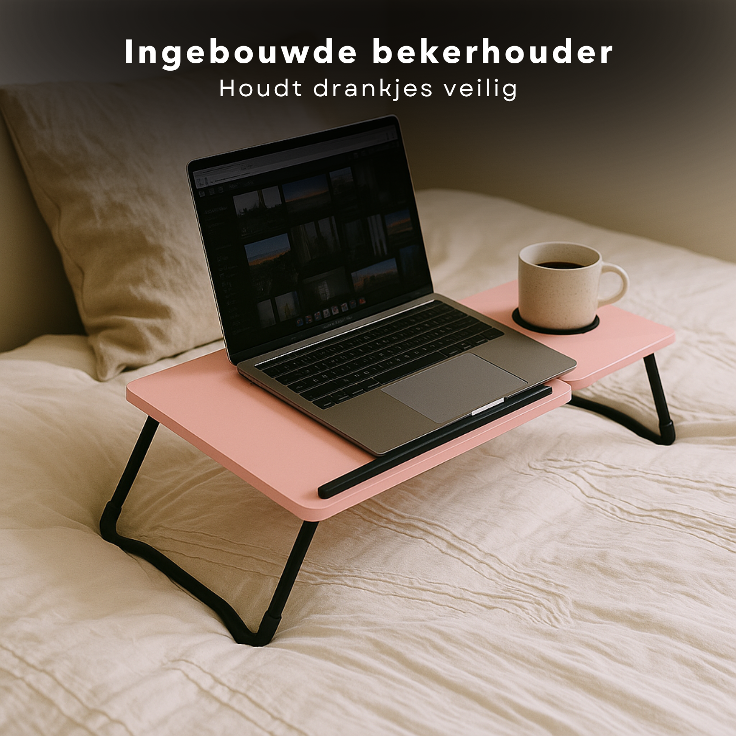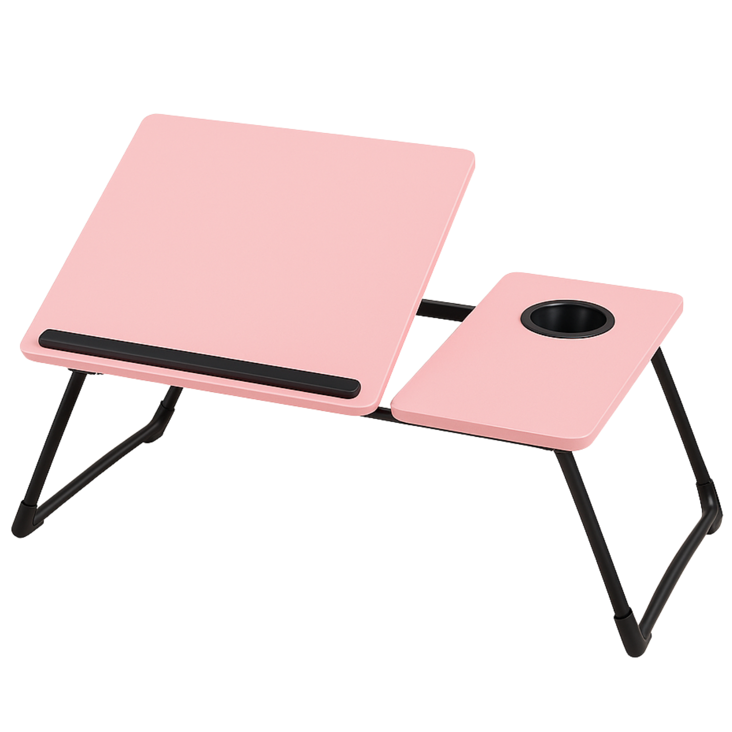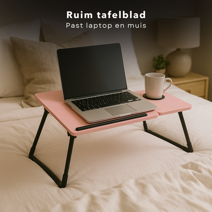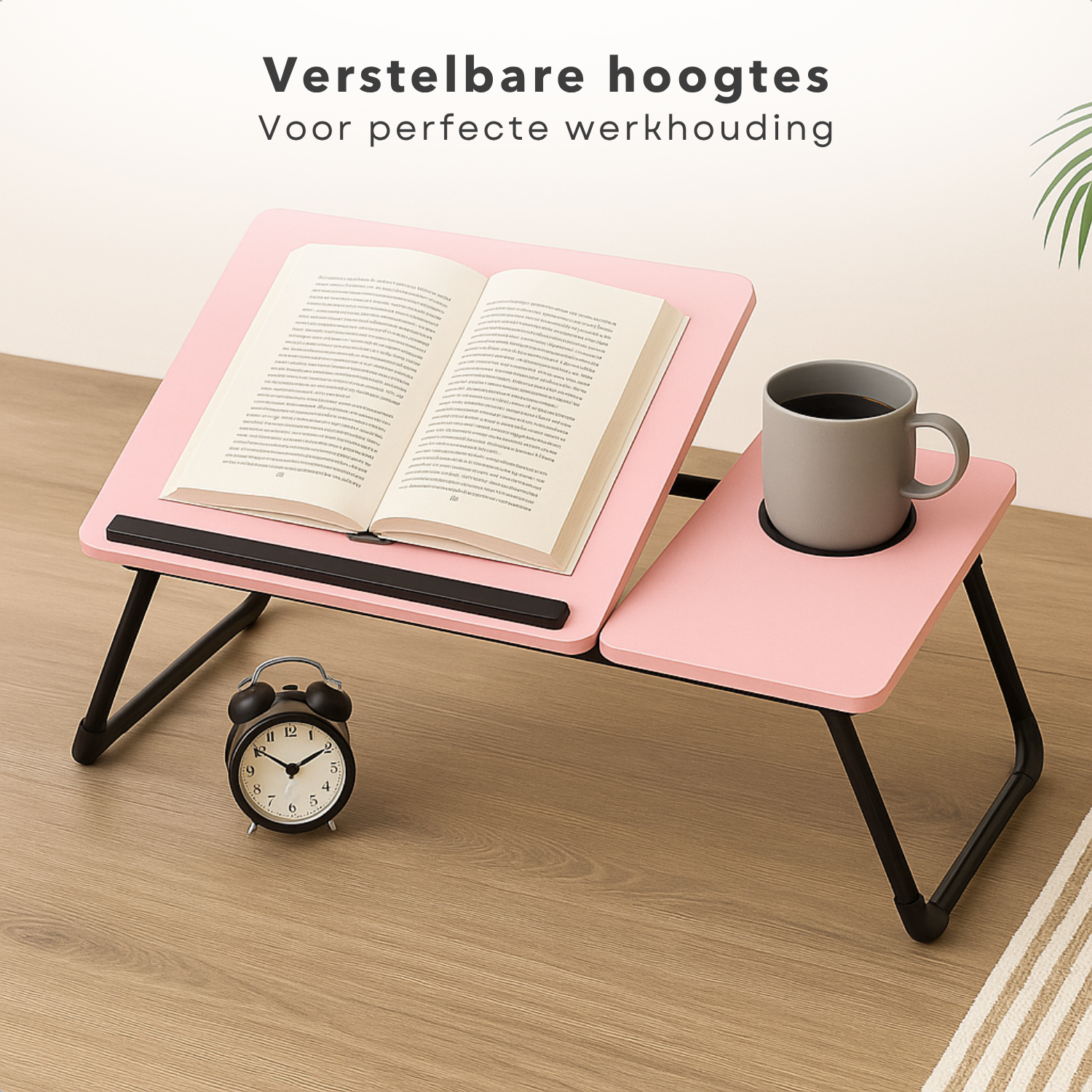 Cheqo® Verstelbare Laptoptafel - Laptopstandaard - Laptop Tafel - Opklapbare Bedtafel MDF - Banktafel Anti-slip - Ontbijttafel - Ontbijt op Bed Tafel - Metaal - Roze