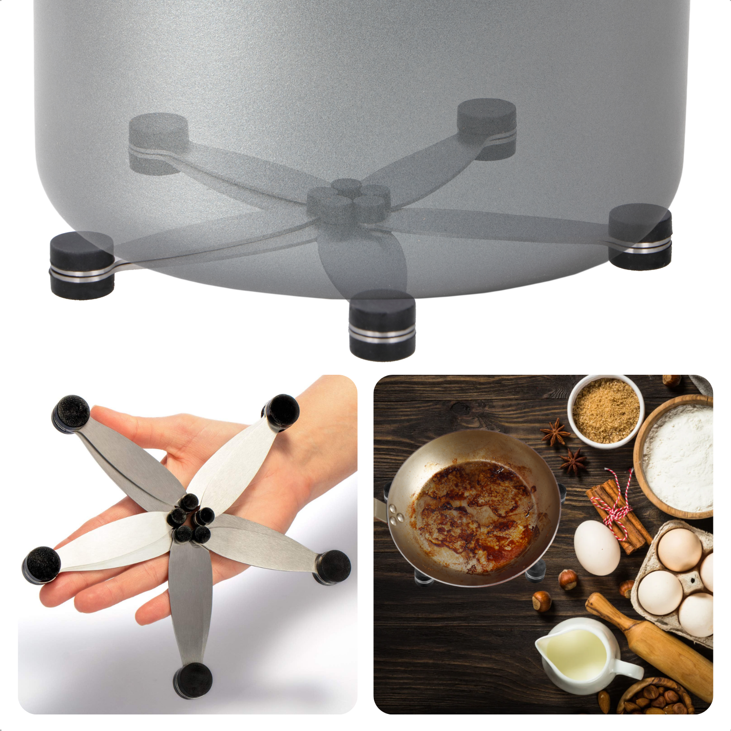 • Hoeveel gewicht kan de onderzetter dragen?: De onderzetter is ontworpen om zware pannen en potten te ondersteunen.